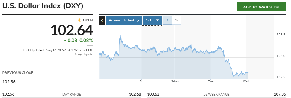 Note: The US Dollar index shows how strong the dollar is in comparison to other major currencies.