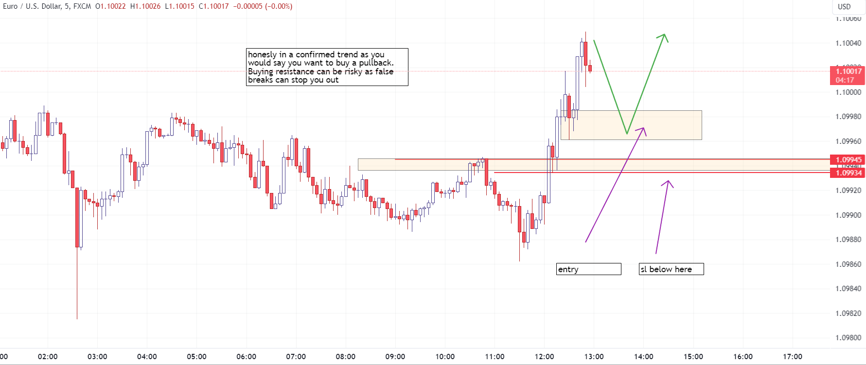 Price is testing the line i drew to mark the high of the Asian session today. If it breaks through this resistance line an upward trend may be starting