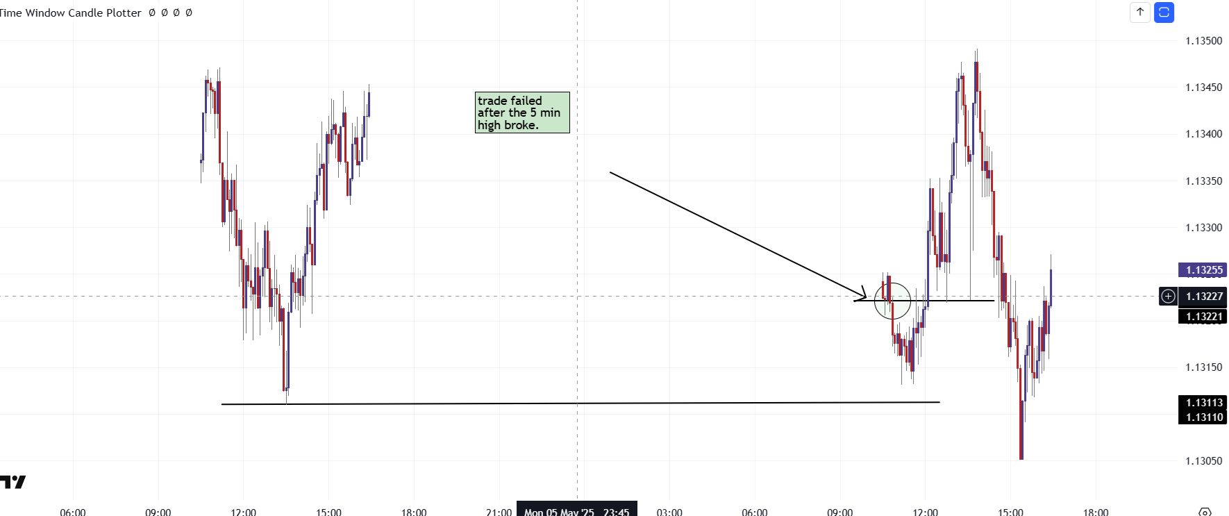 On hindsight, I should have waited for a 10 minute candle to form above Asian low before i bought.