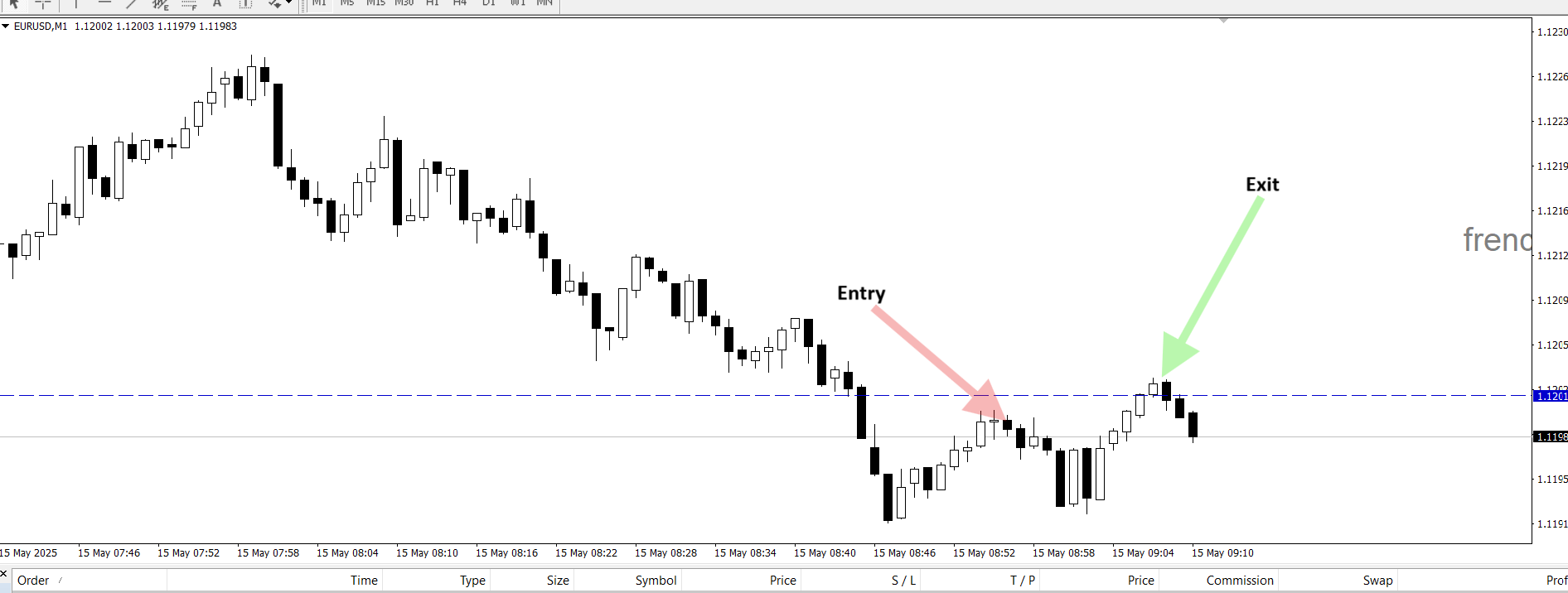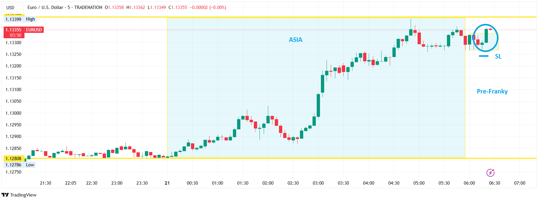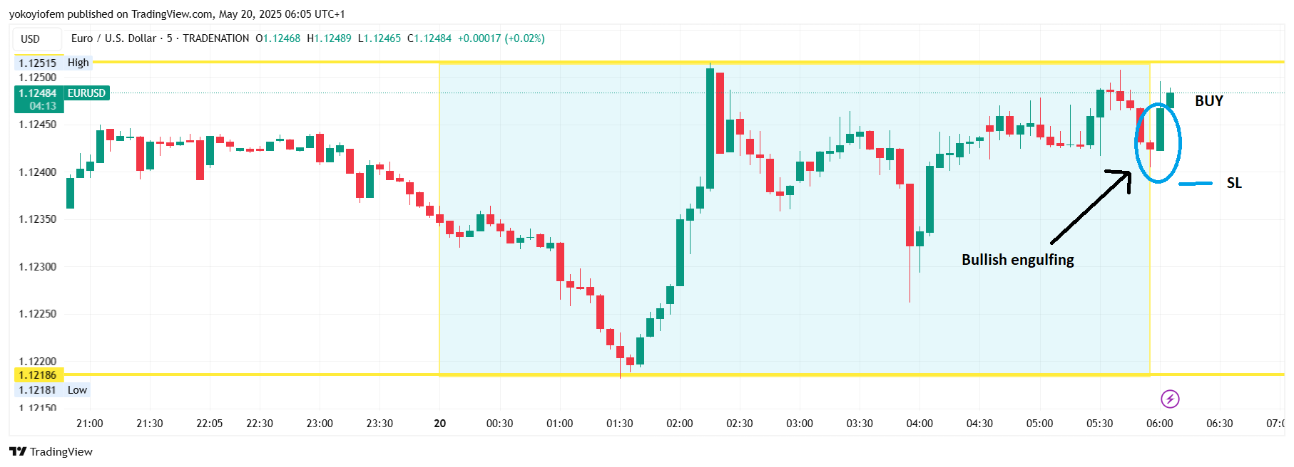 Today I am long eurusd after spotting the 5M bullish engulfing pattern during pre-franky.
