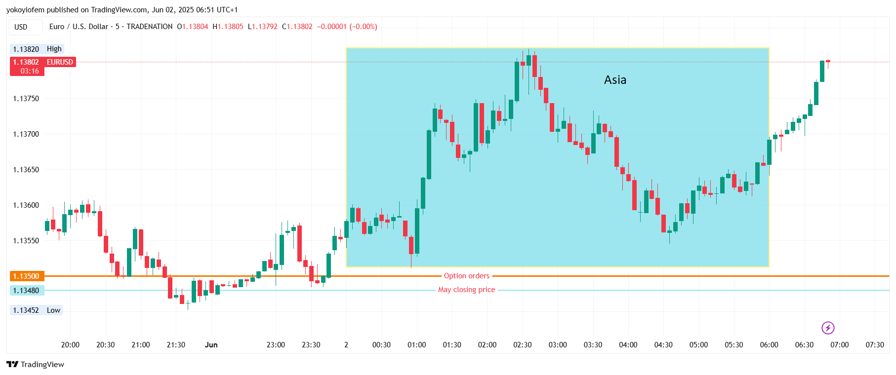 Today there are some levels to take note of, the 1.1348 closing price of May last month, and the option barriers stacked around 1.1350 level.