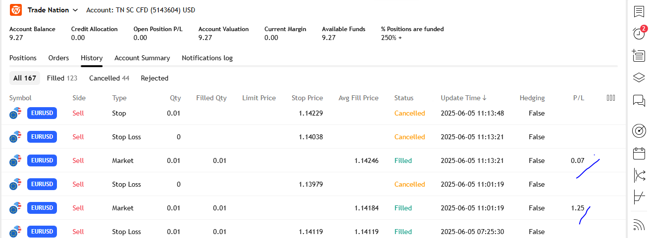 I'm net BE for the month. Monday was a losing day for me. Tuesday was a small profit, because I was stopped out on my first sell trade yesterday. Today was good.