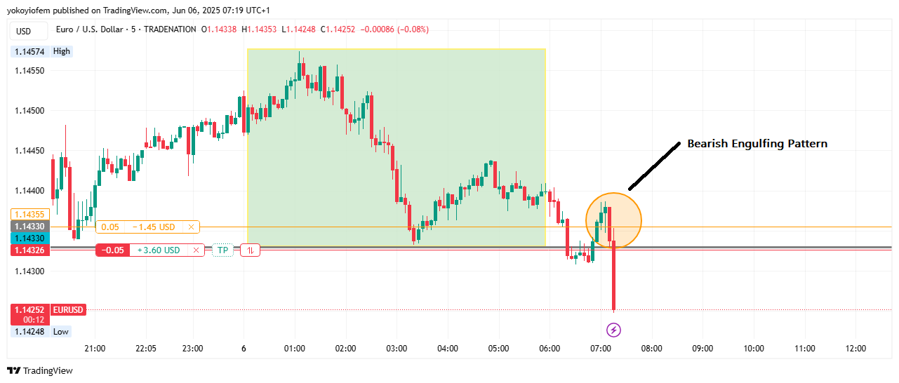 Today after sighting the bearish engulfing pattern, i shorted the eurusd