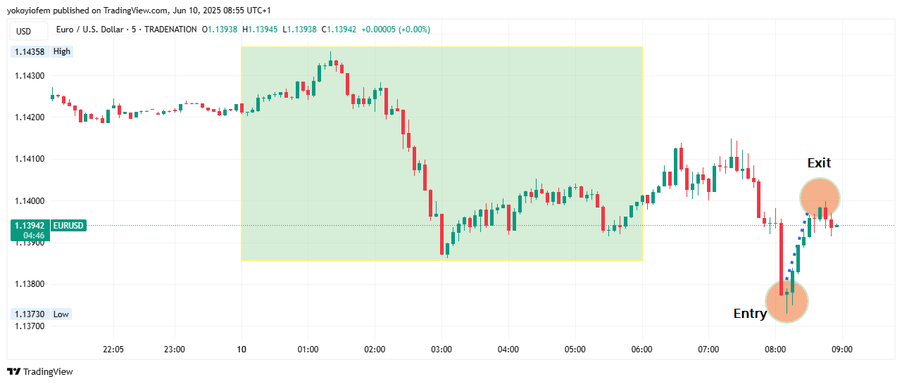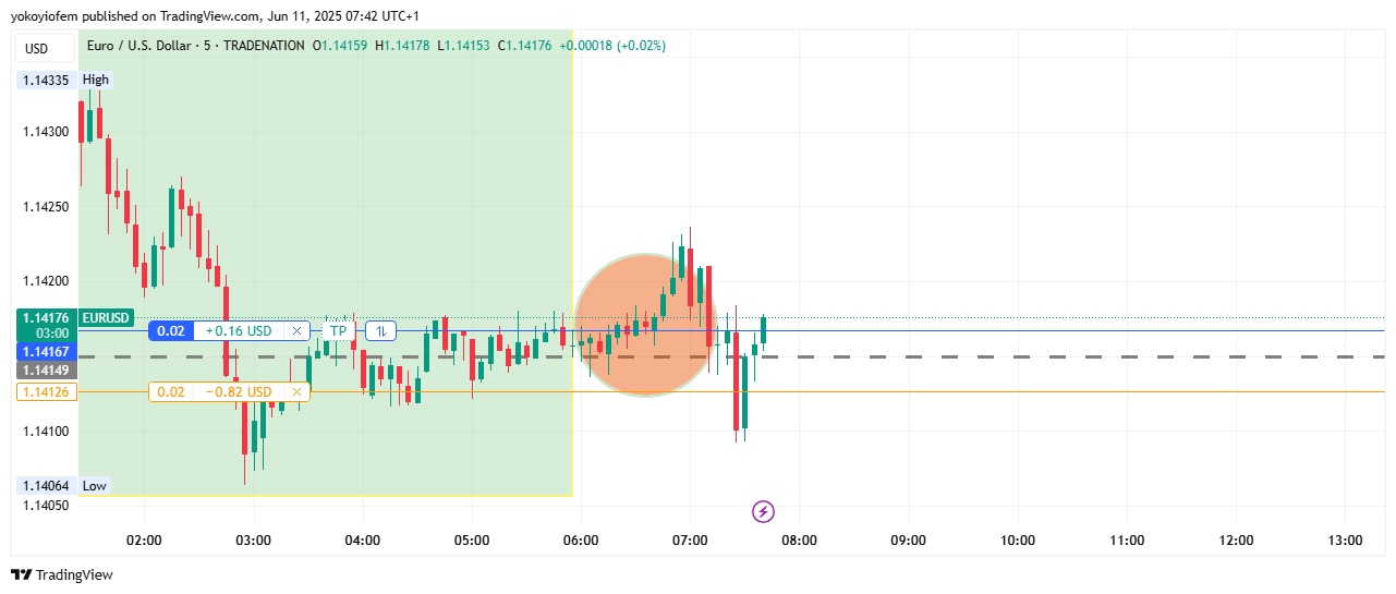 I have exited my short position because the first 5 minute of pre-franky is acting as support and price cannot break below it. I change bias and go long now as Franky is almost over then i exit the long with some profit. I am done for the day.