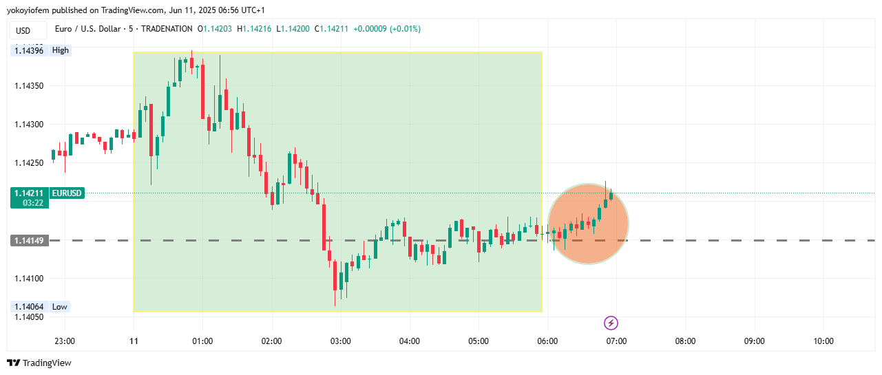 Price is beginning to depart from the range but when the actual Frankfurt session starts by 7 am we might see a reversal downwards so i will wait. Its also important to note that there are option orders stacked at 1.14000 which is below