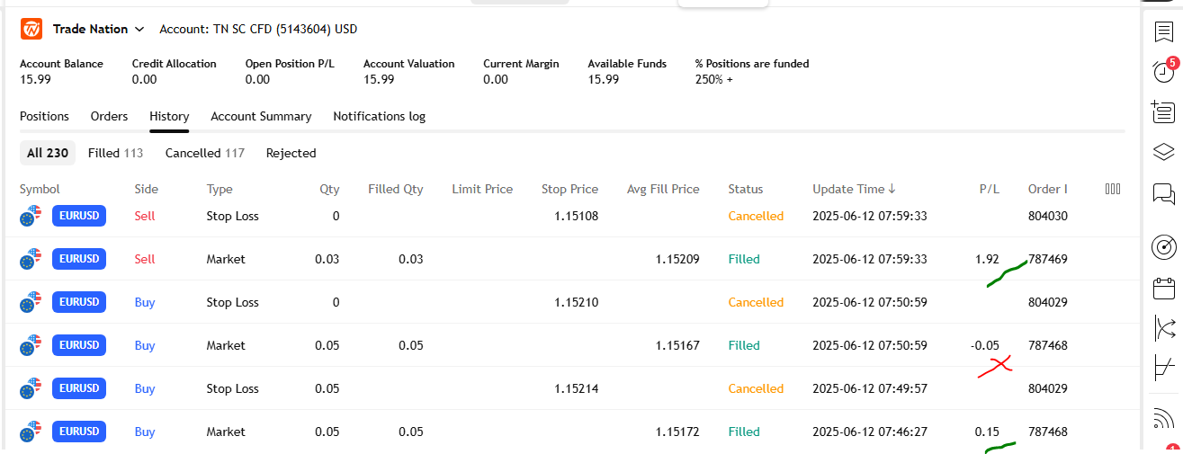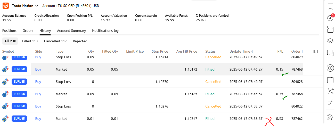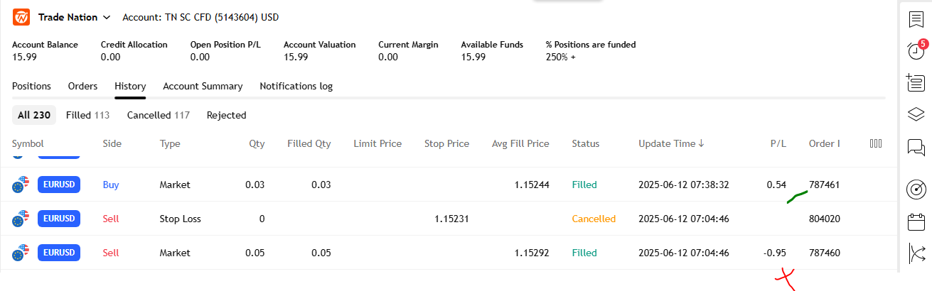 I also made losses but net net my trading today was a break even