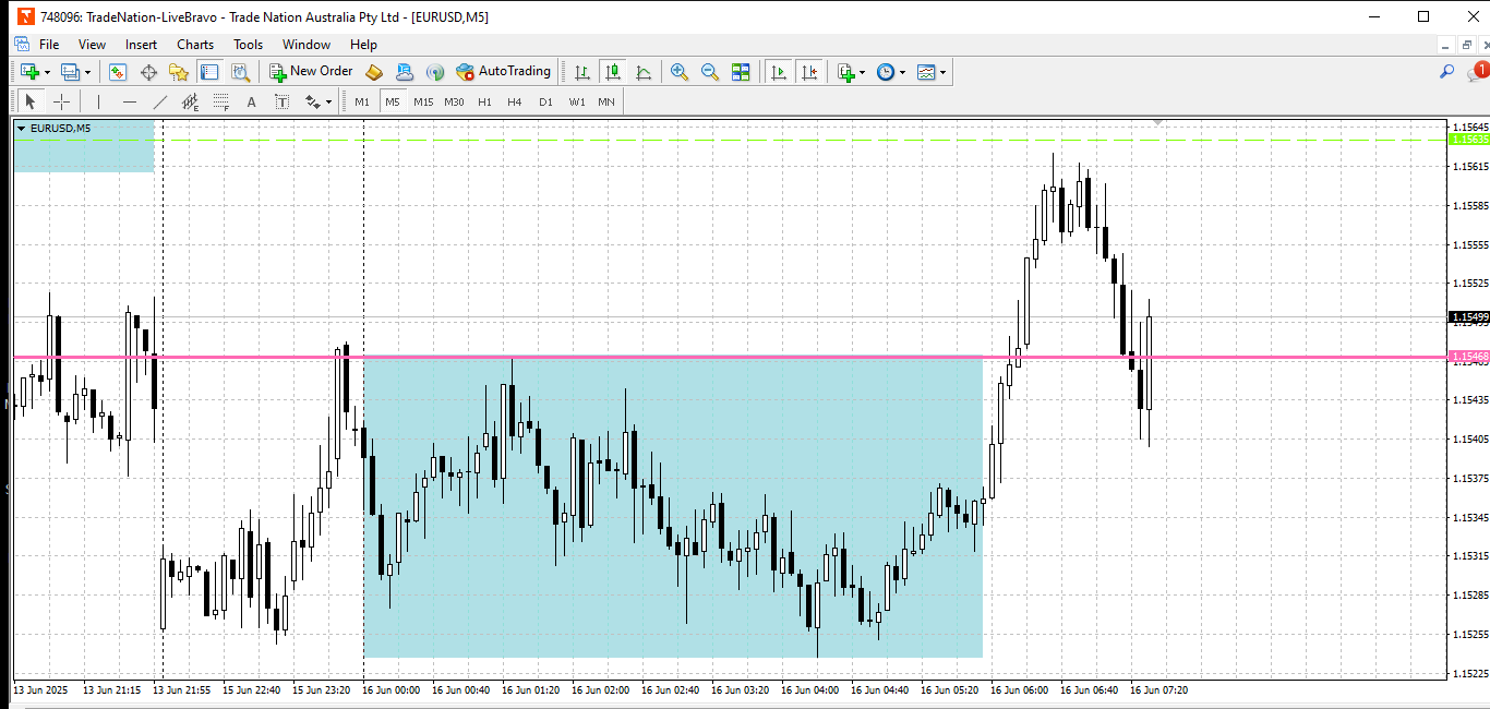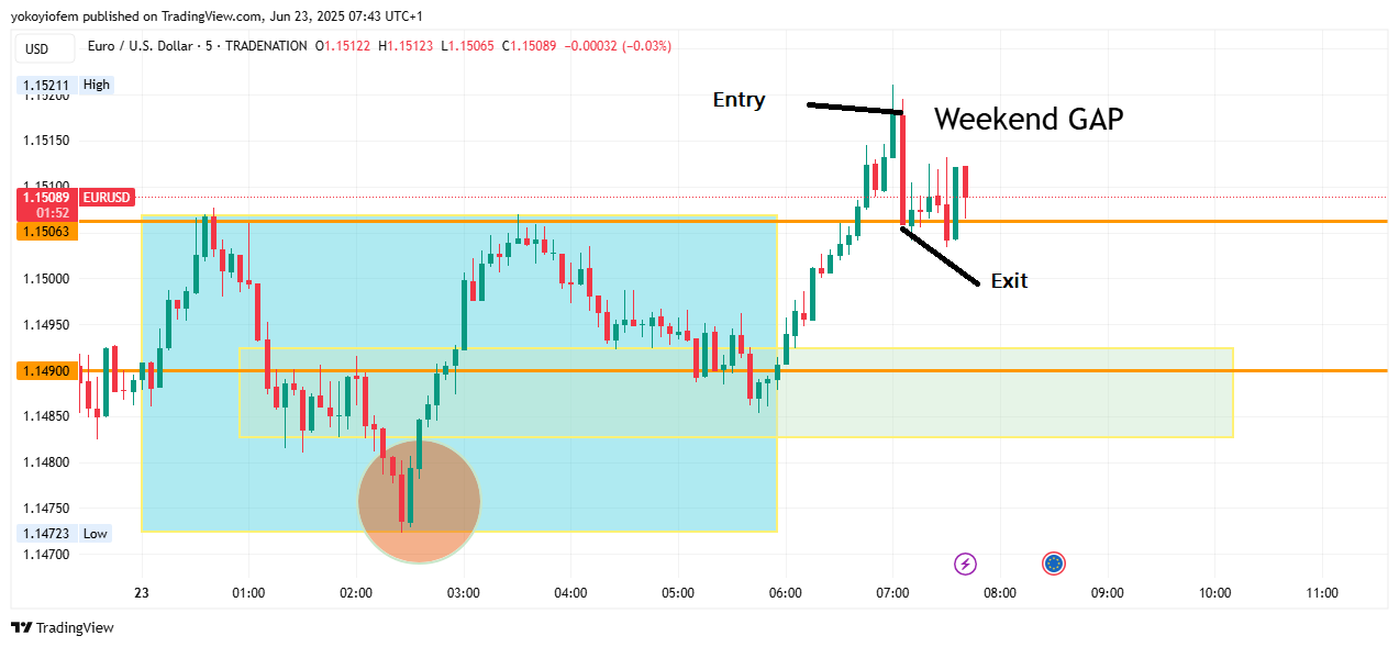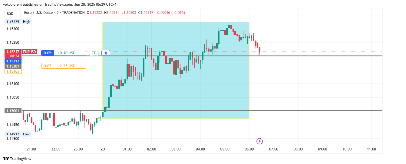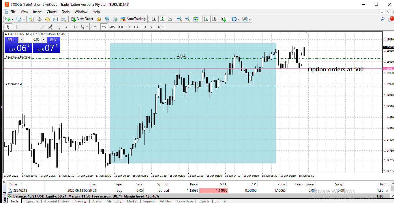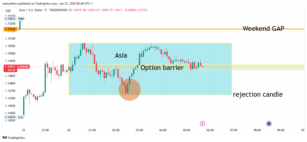 I exit the long trade just before the end of pre-franky and at the start of franky because most time the franky can reverse pre-franky. If you look at the chart you will see that price has not been able to close below the option barrier level of 1.1500 (ash color line)