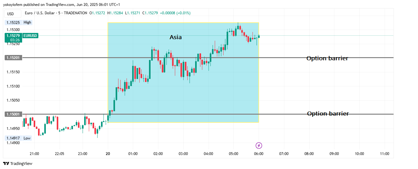 Today a look at the eurusd chart shows there are option barriers stacked around 1.1520 and another one stacked around 1.1500.
