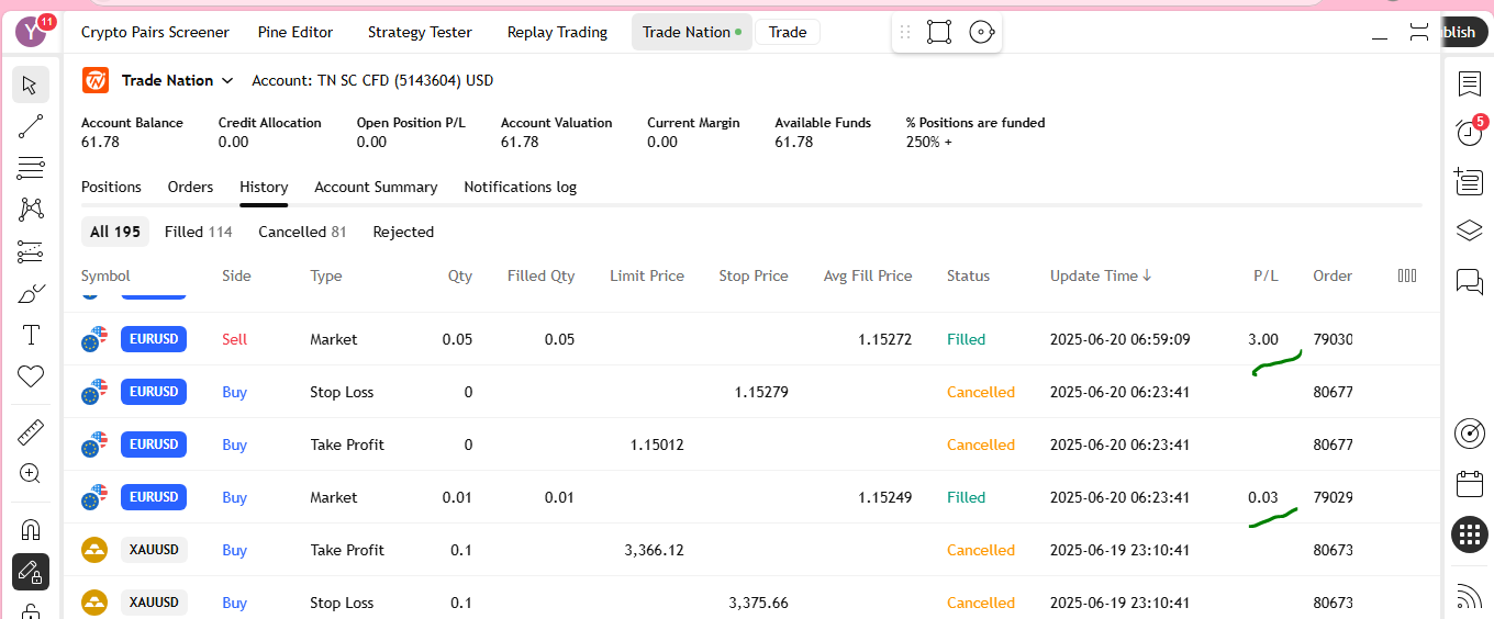 Today, I was long on Franky. Got stopped out on Trade 1 but i re-entered the market again. It is a near breakeven today bit i am done for the day as it is past my trading hours.