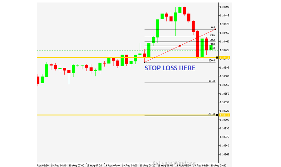 I protect my position by setting my stop loss below the Fibonacci line with 100% reading.