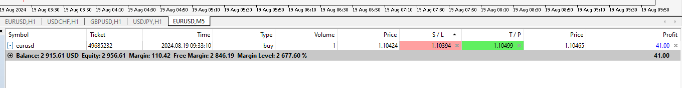 Price has bounced of the area of support and is going upwards so i have opened a long position by buying.