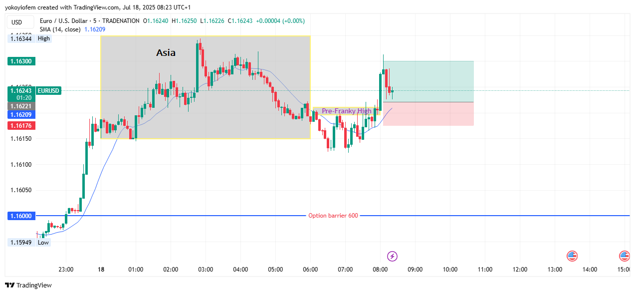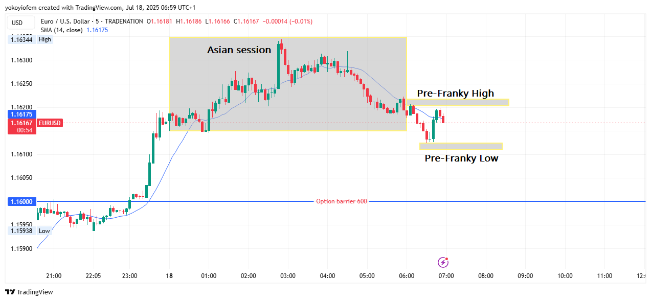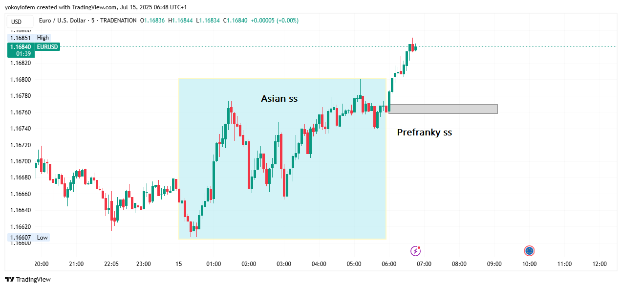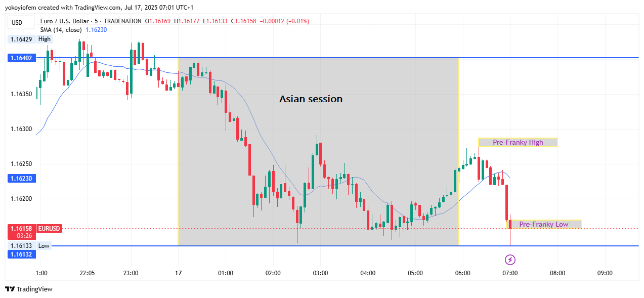 Today price has broken out of the Asian session high so i guess it is going to reverse and come back to test the prefranky low. I hope to trade/short the reversal.