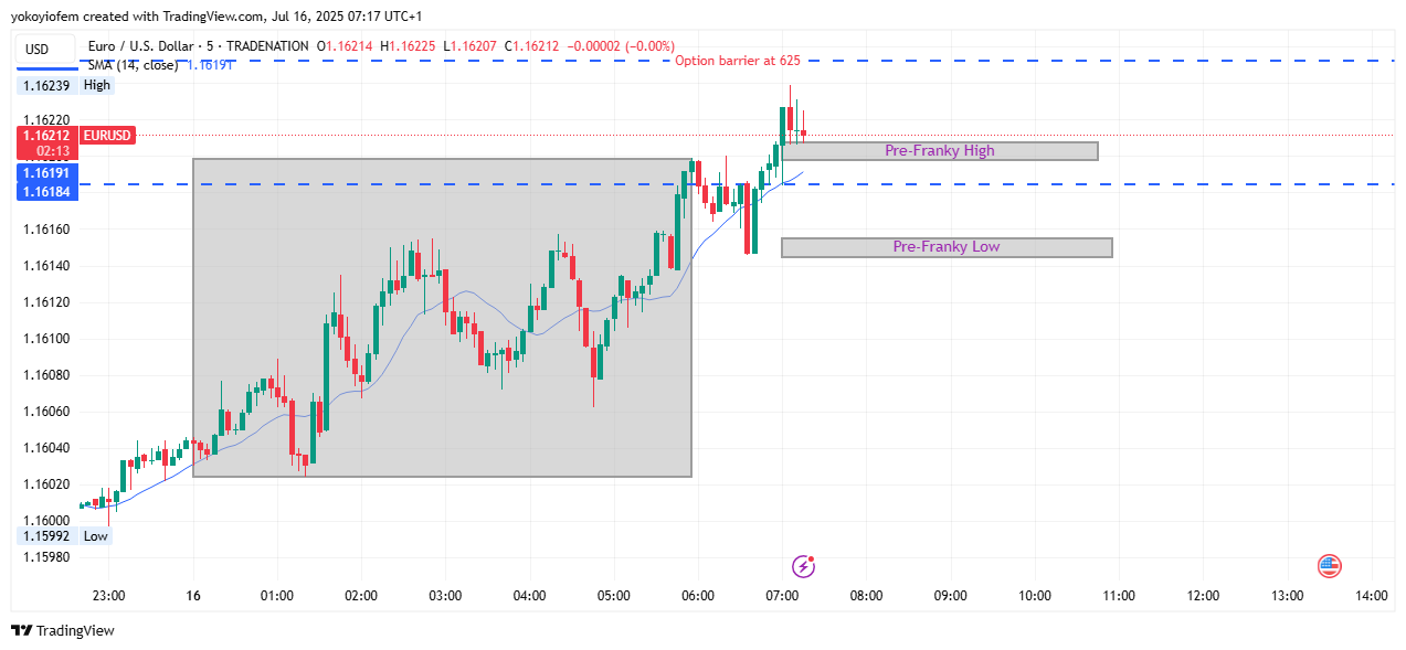 Price just bounced off the first 5-minute candle (16184 level) of prefranky and is ranging above it.