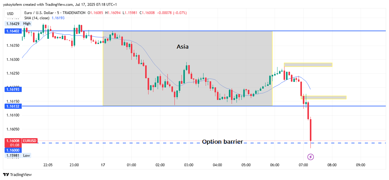 Price has tested the Pre-Franky Low, so I am short as price is falling towards the option orders.