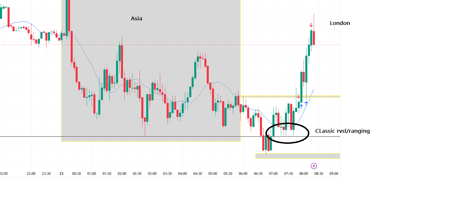 Today it was a classic reversal & ranging trade. Franky started below the Asian high, then reversed it upward. However, price ranged at the Asian low for an hour before breaking out and going upward at the start of London.