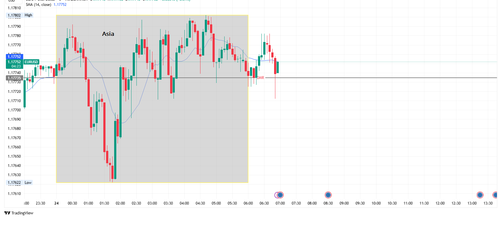 For last week, the pattern was a break of Asian low and then a reversal, this happened on all days except Thursday where the break of Asia continued downwards without reversing.