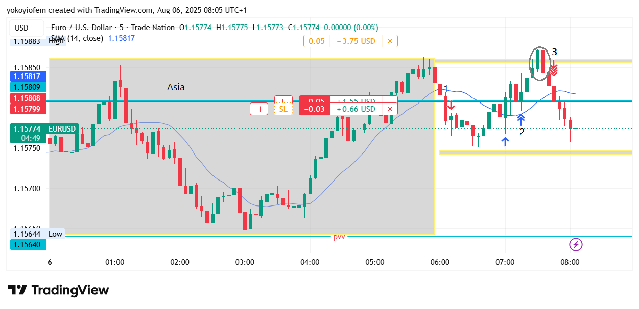 Okay results are in; I am down 6 pips today. Had to close my short trade (trade 3) as price started rising.