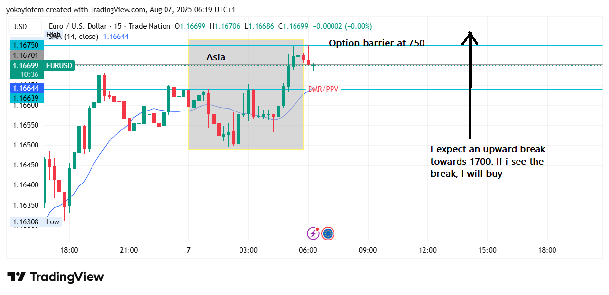 Today i expect a break upwards and if price is able to close above the Asian high, I will buy.