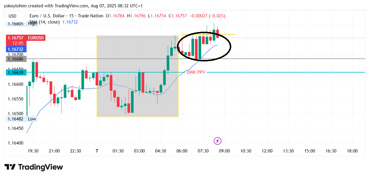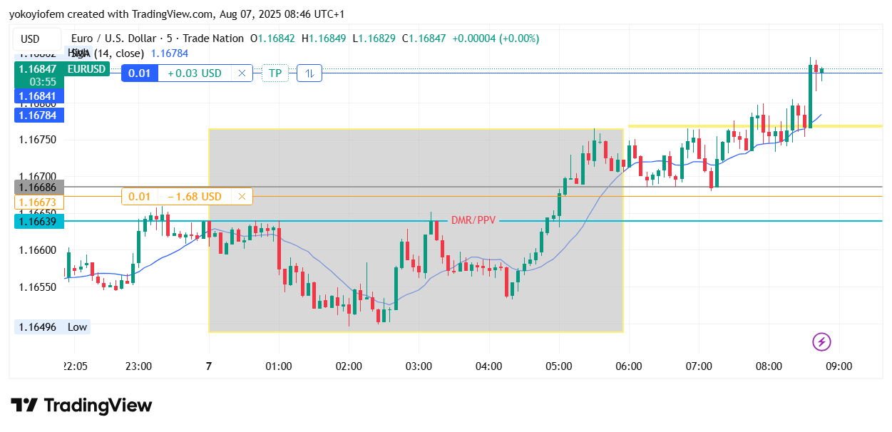 Trade 2 was a long and i took it, hoping price would hit the 600-option barrier level but it didnt work out so I closed the trade. I noticed that this week, Monday set the high and price has not been able to close above it properly. Today, price attempted to close above the Monday high but was pushed down as i explained for Trade 2.