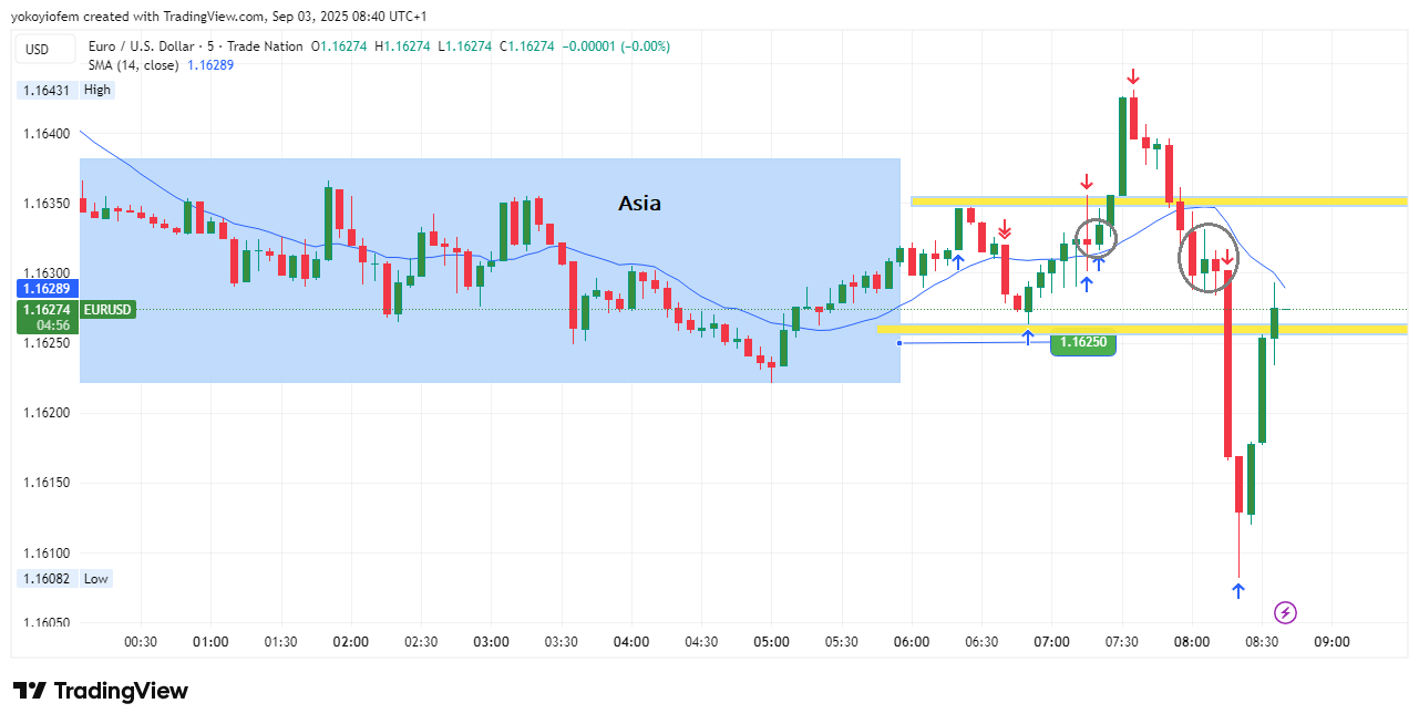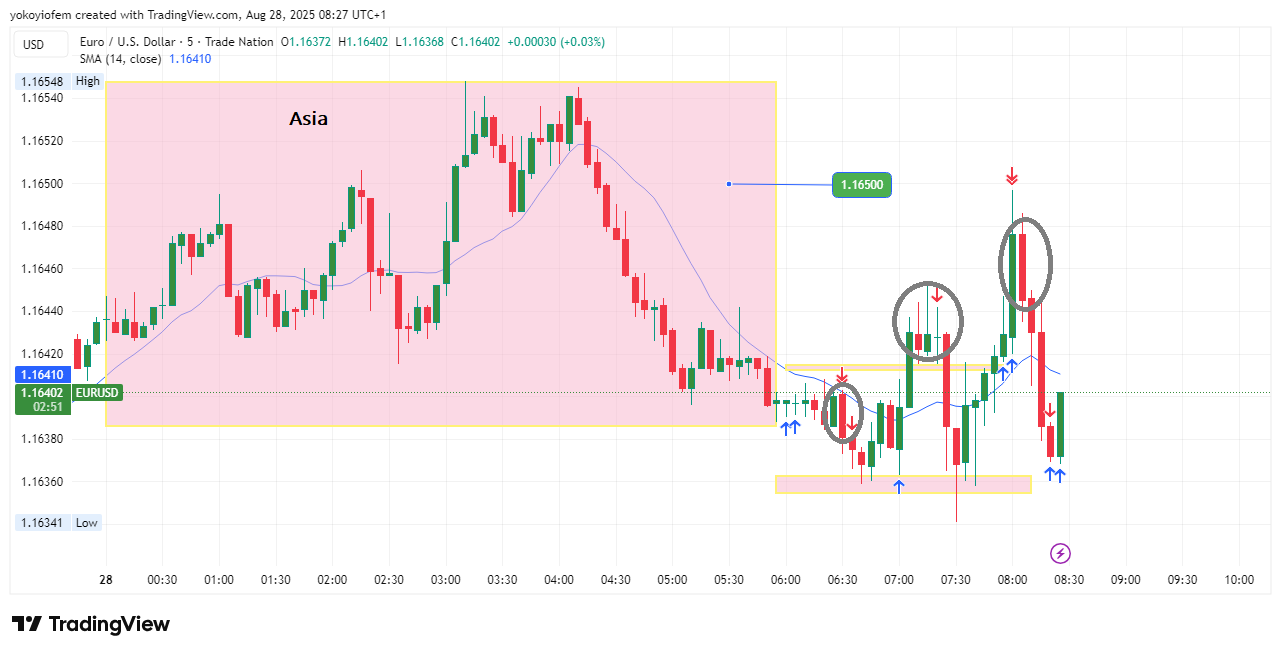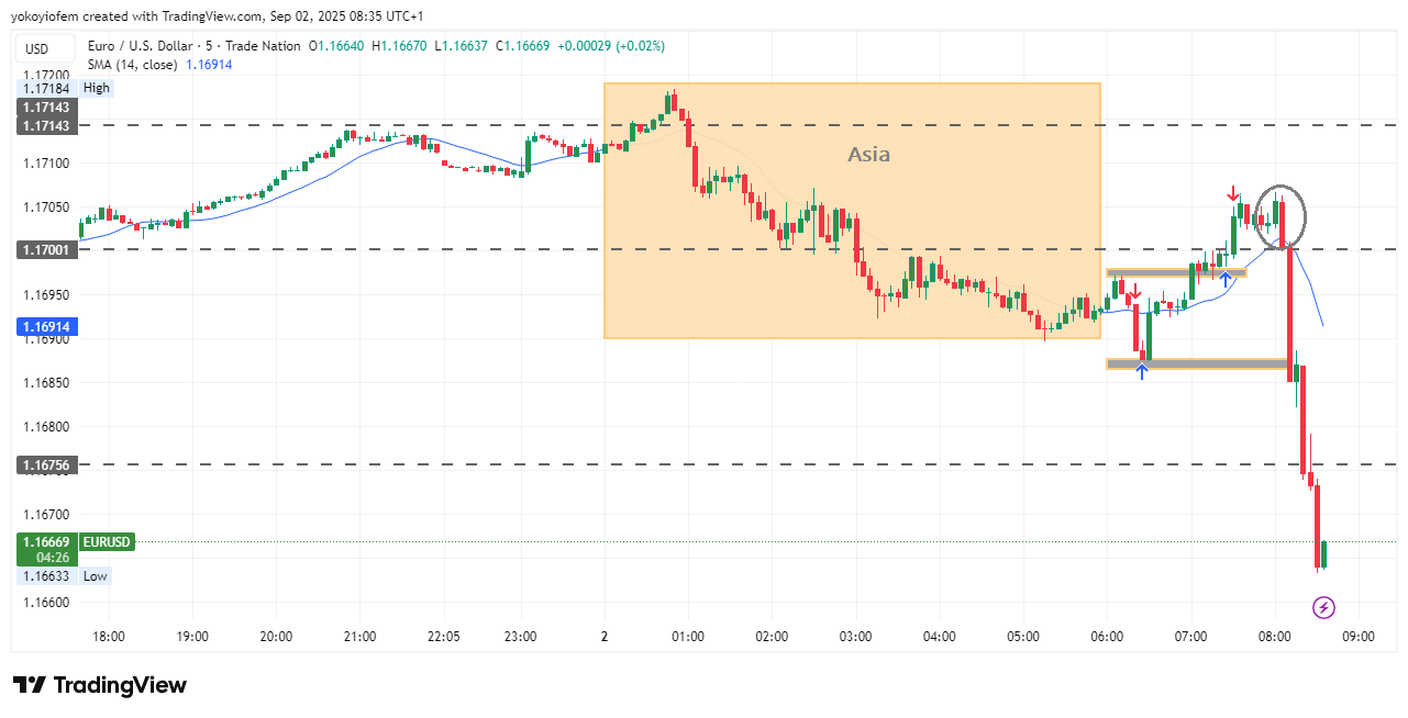 I also want to add, today was HCOB day (Eurozone PMI data). You get spikes to the nearest barriers or towards the cluster, and then it is possible that the entire move reverses quickly.