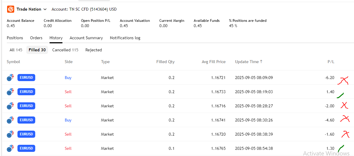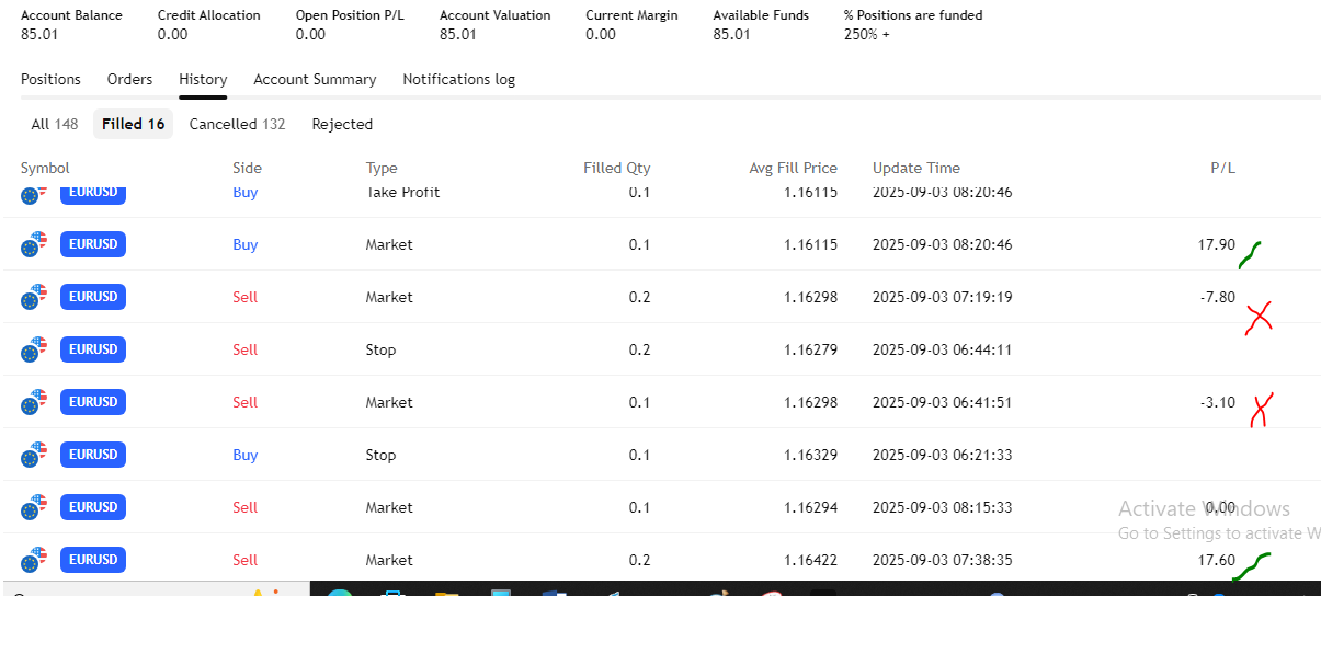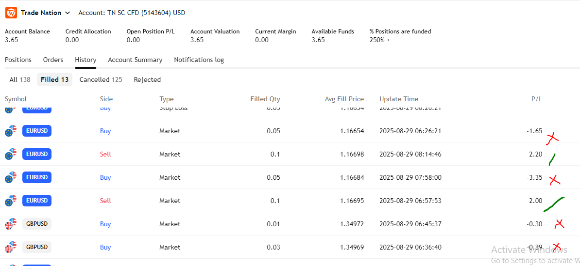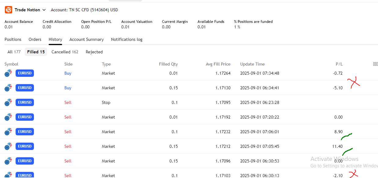 I am down 10 pips today and tbh i didn't trade well today. On some trades, i didn't stick to my rule of entering a trade only after a break of the first 15M candle and i refused to accept small losses. I was also caught up in the range during the London session. I had to withdraw the funds from my account to prevent myself from over-trading.