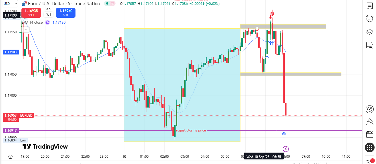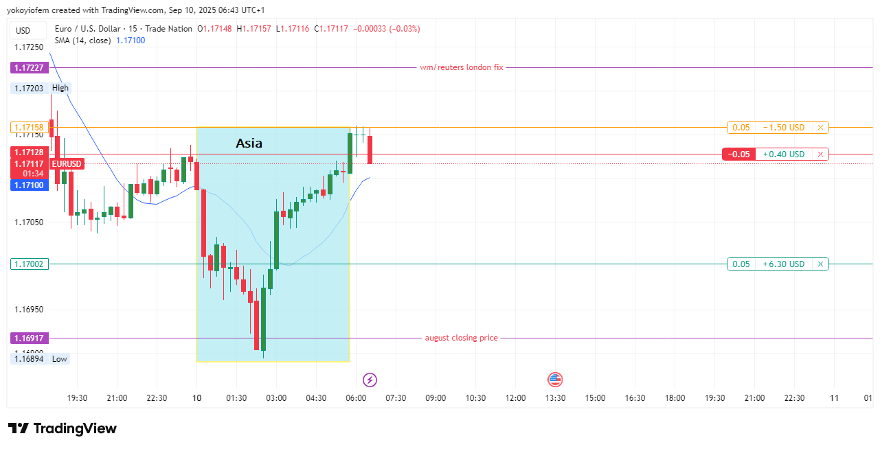 Price fell till the august closing price. I have closd my short positions with 34 pip profit. I am done for the day
