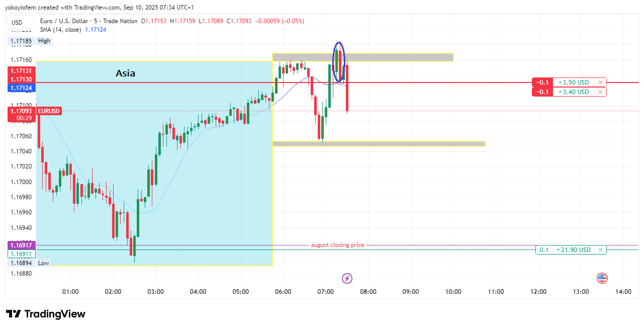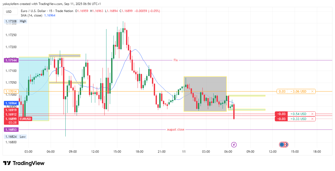 Good morning, yes, there is still selling potential since price is being resisted by the Asian low and has not closed above the first 15M candle of Franky. I kind of knew the markets will be ranging today but I just wanted to test the waters hence i exited for BE. I am not trading again till tomorrow.