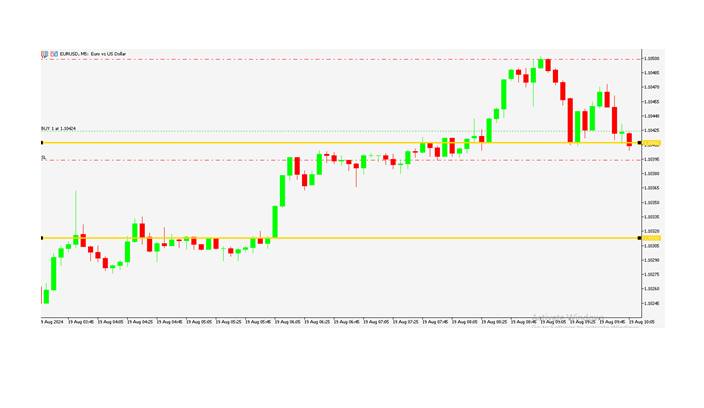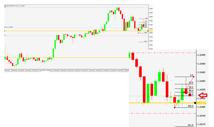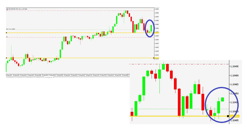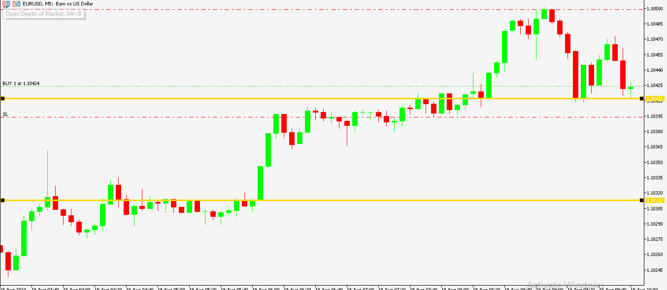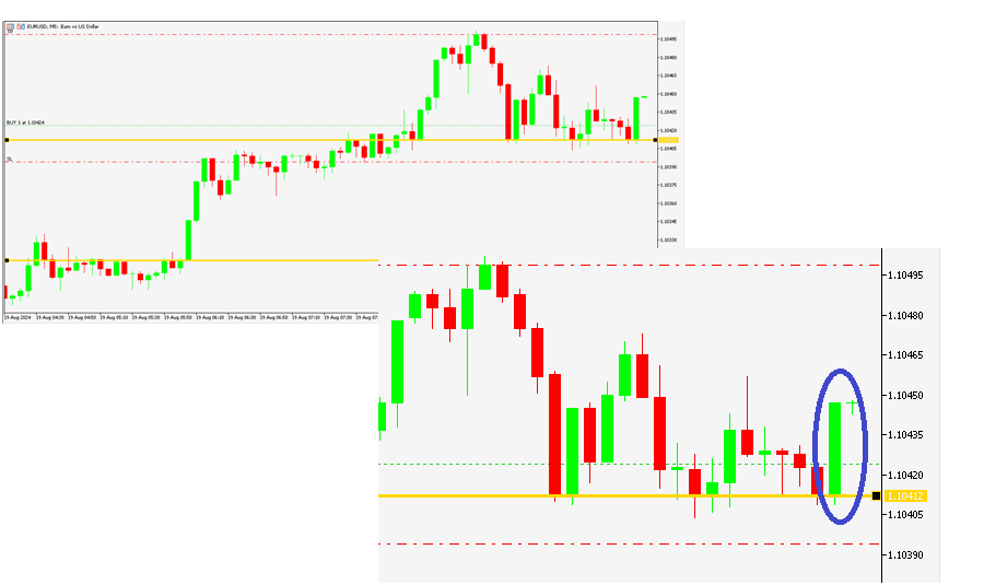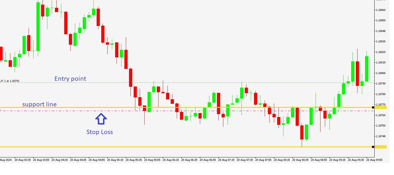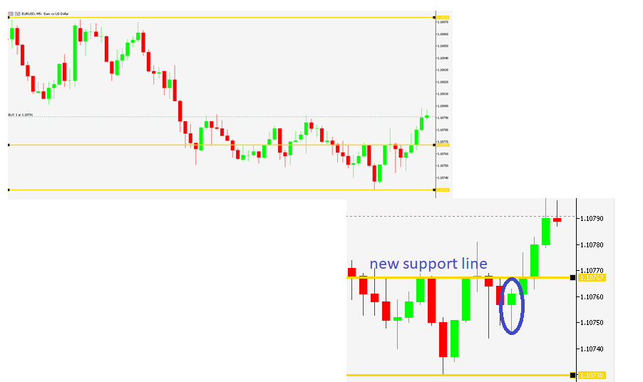 To enter the market again I take the point where my Stop Loss was hit and draw a line to mark it. This line will serve as support.
