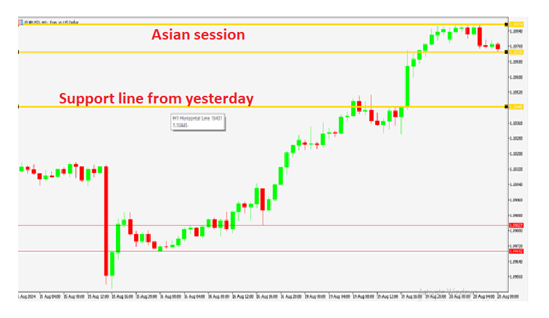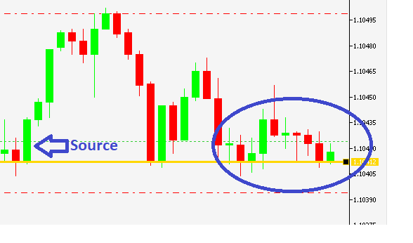 The source of this support line is the big green candle to the left. I used this candle as the source to draw the support line because its a big green candle with no wick.