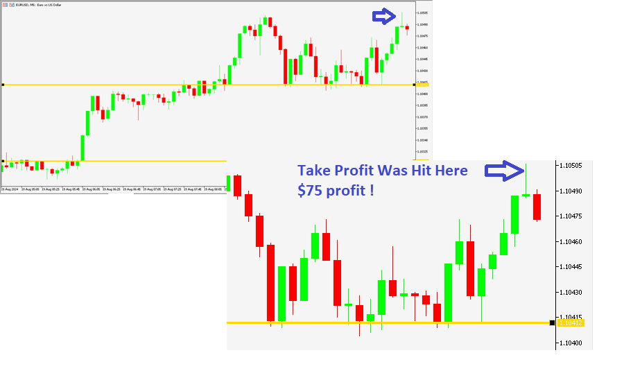 My Take Profit has been hit as price touched the 1.10499 mark.