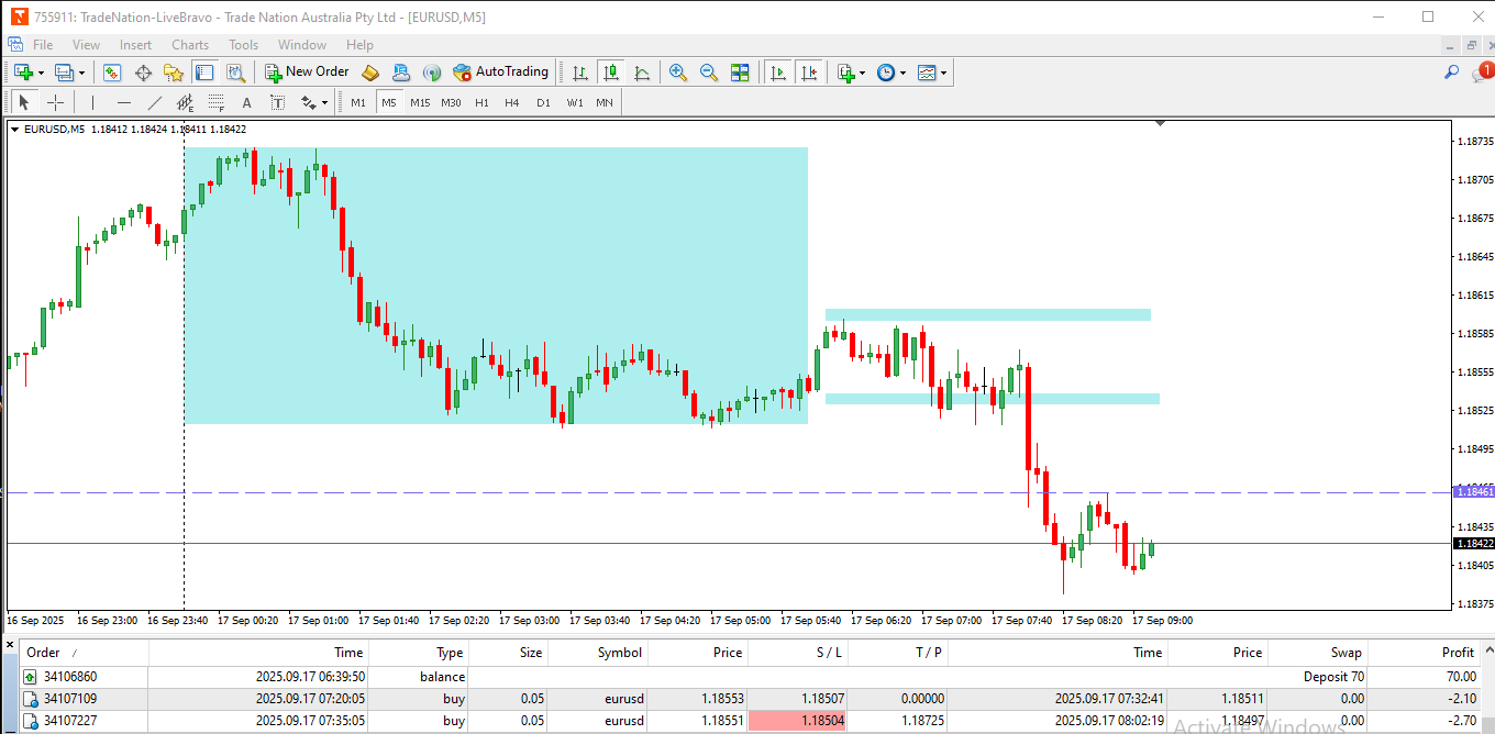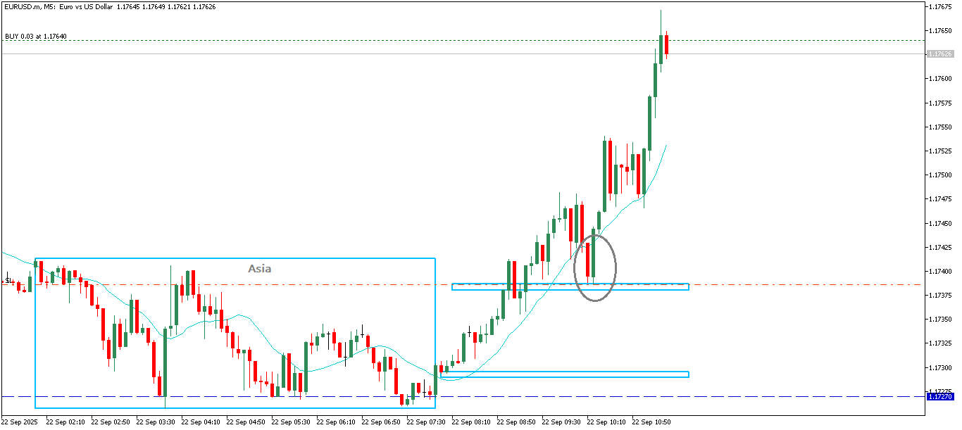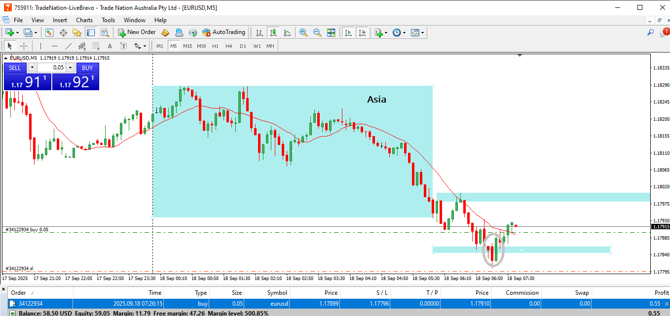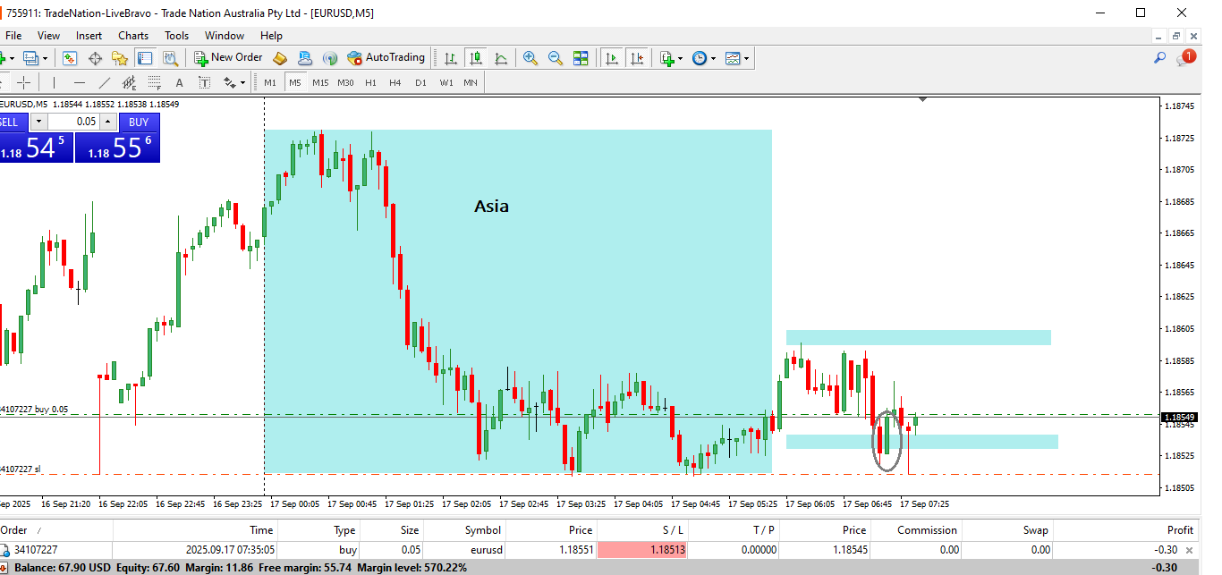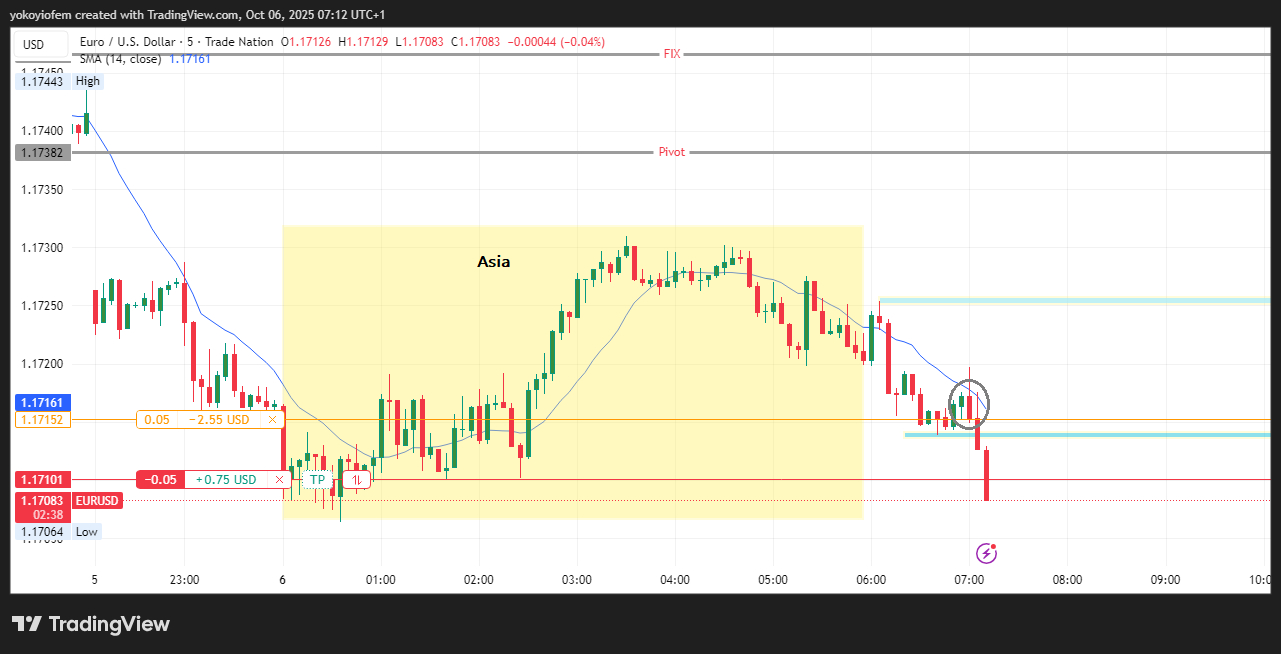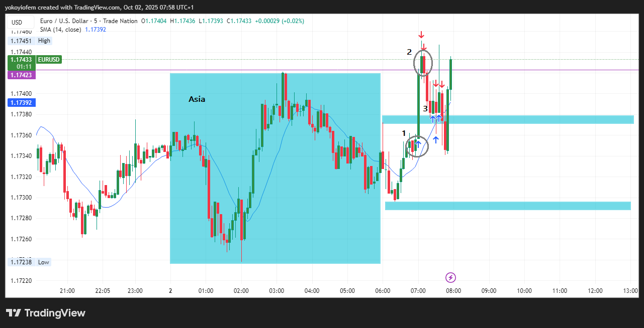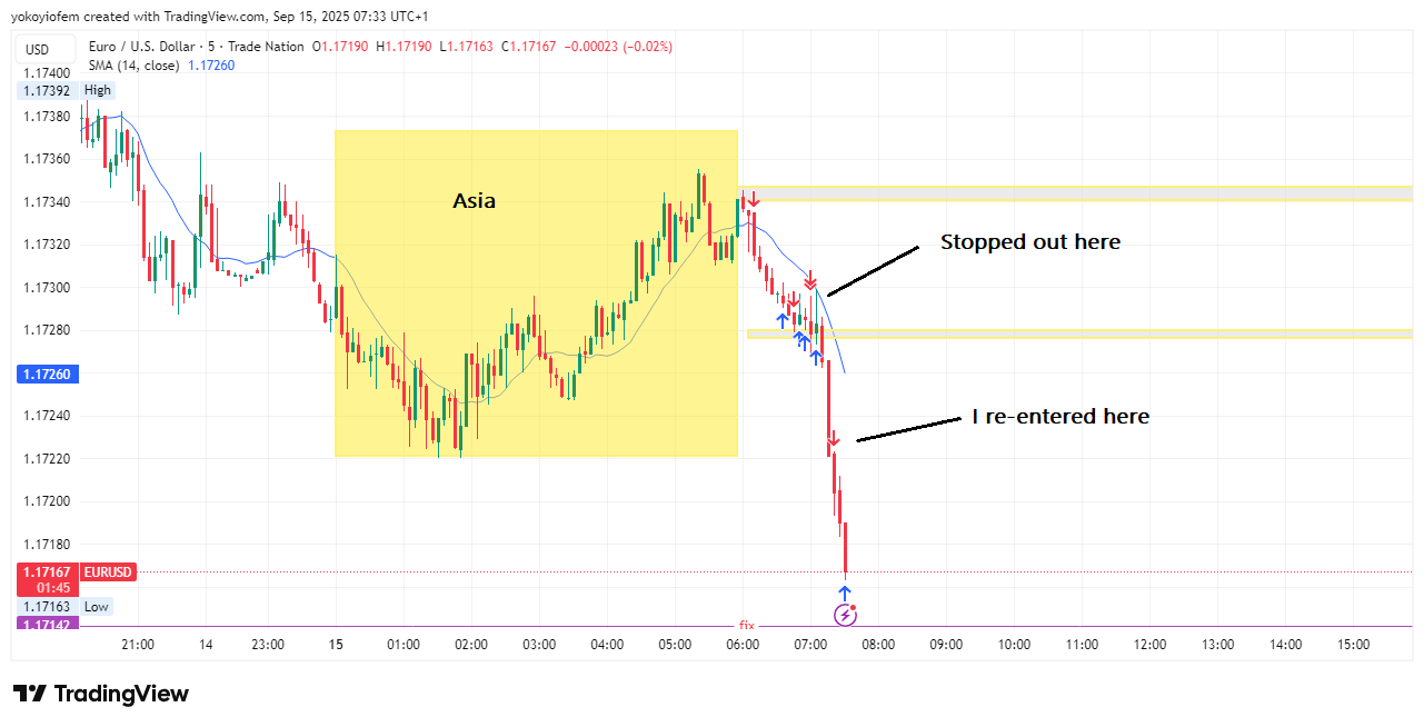 The first trade was a long one at the start of Franky and I was targeting the break of the Asian high.