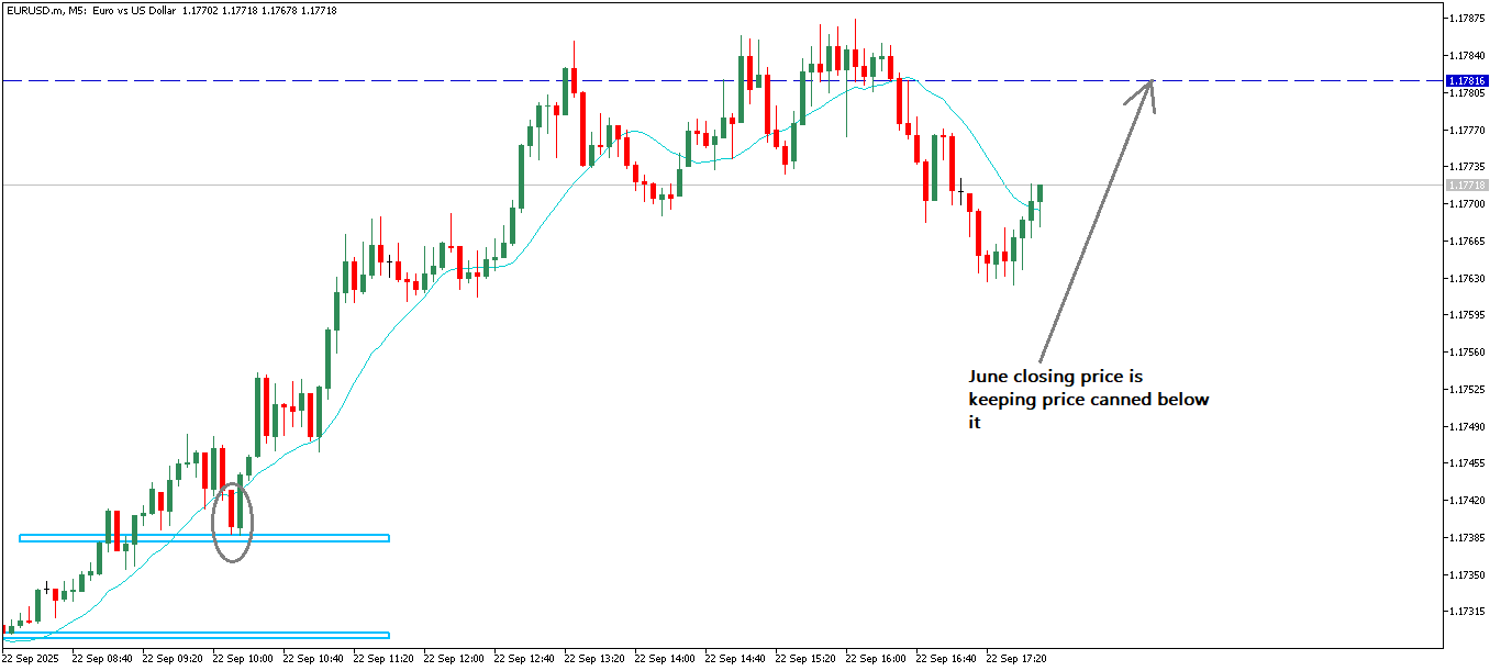 I exited my long position and price kept rising but was pushed back down after hitting the June closing price.