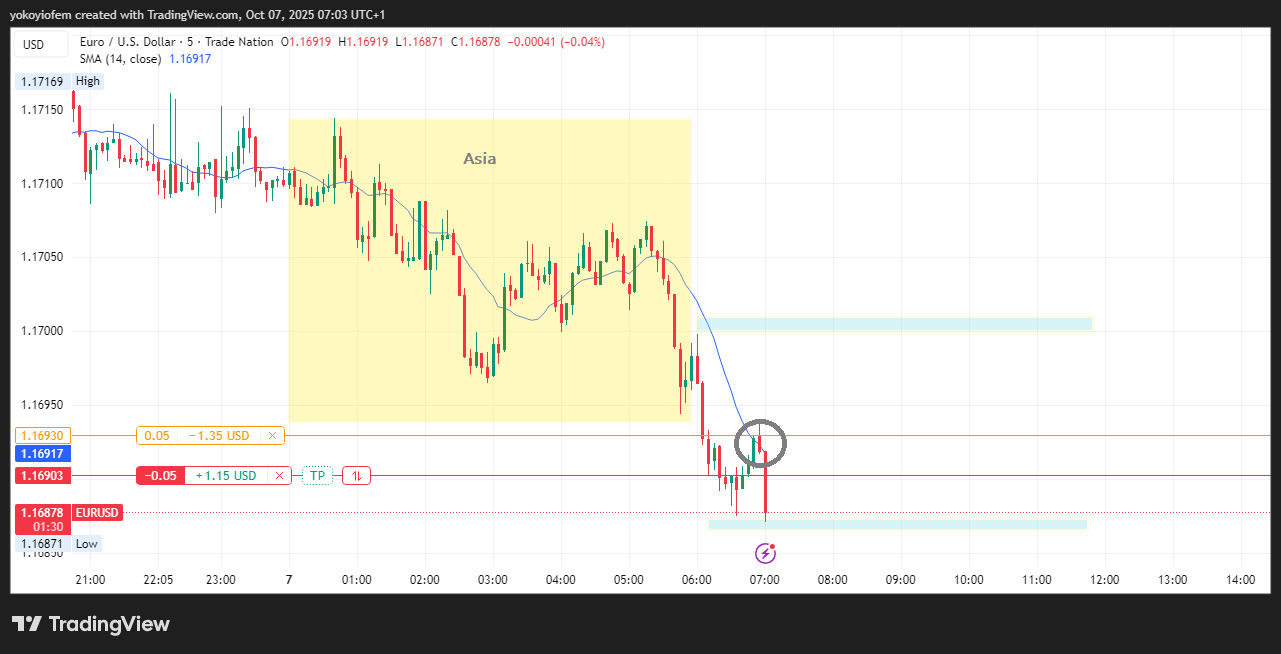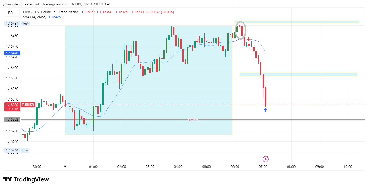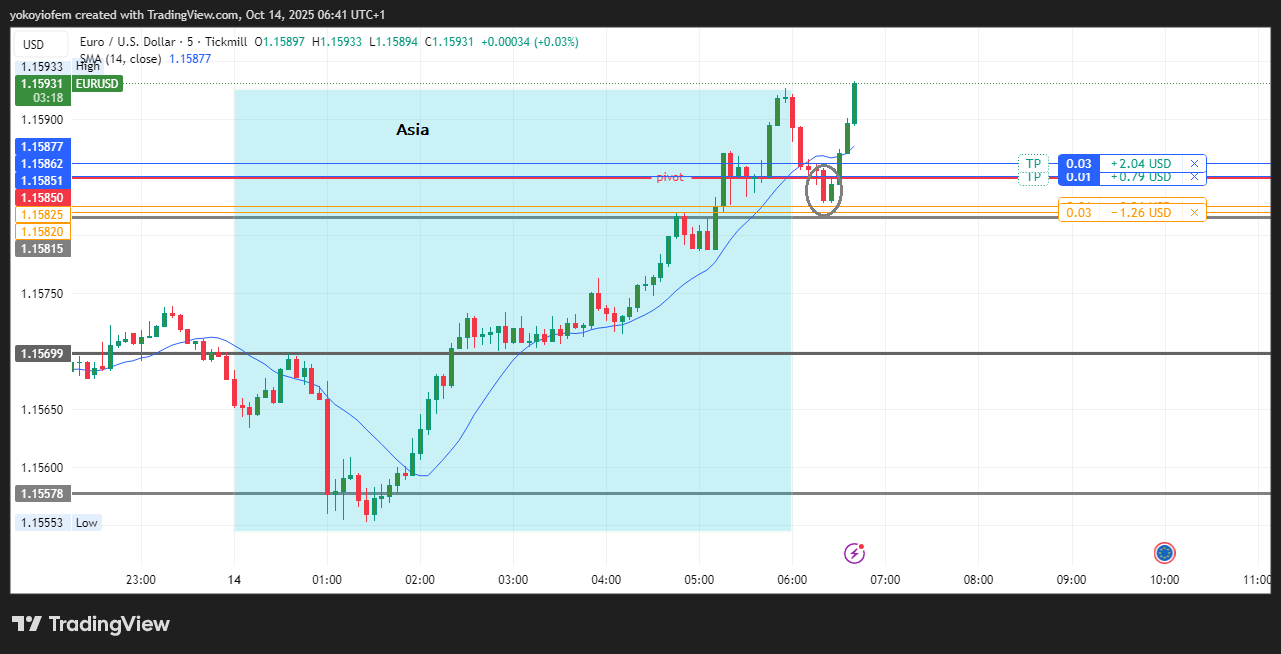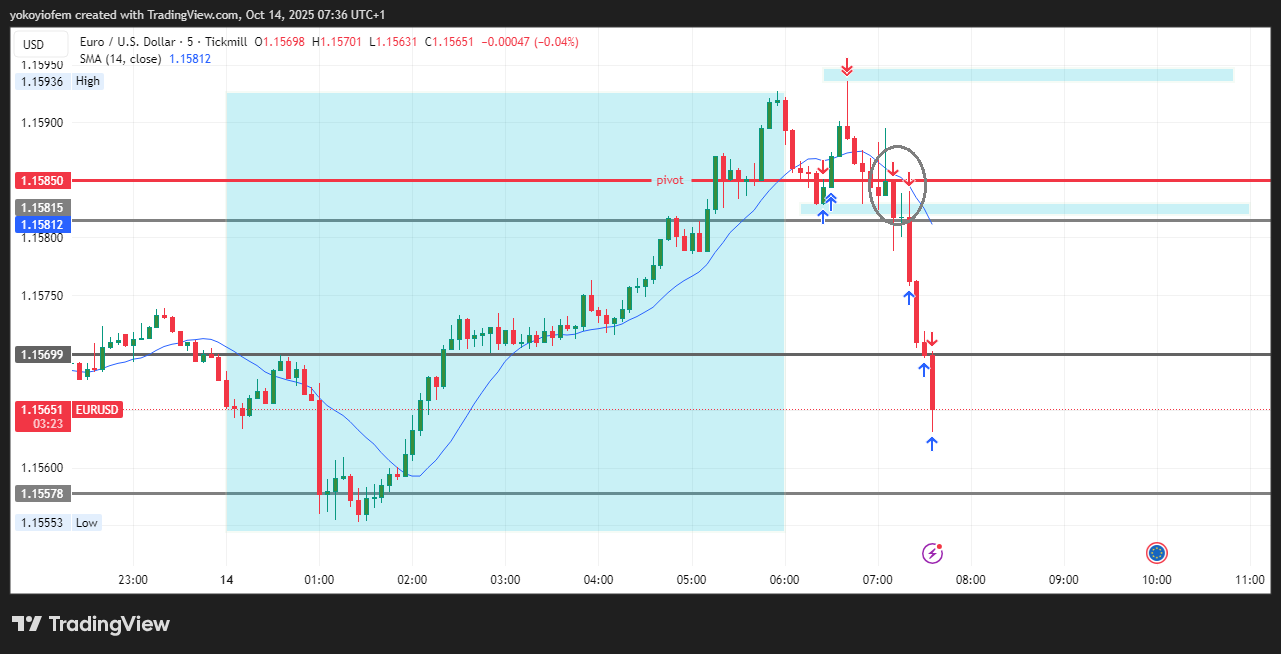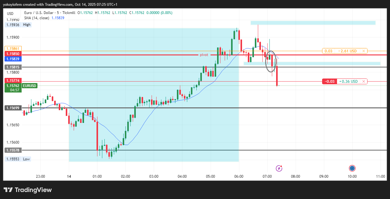 I close my short with 10 pip profit, exiting near the daily pivot point. I am done for the day.