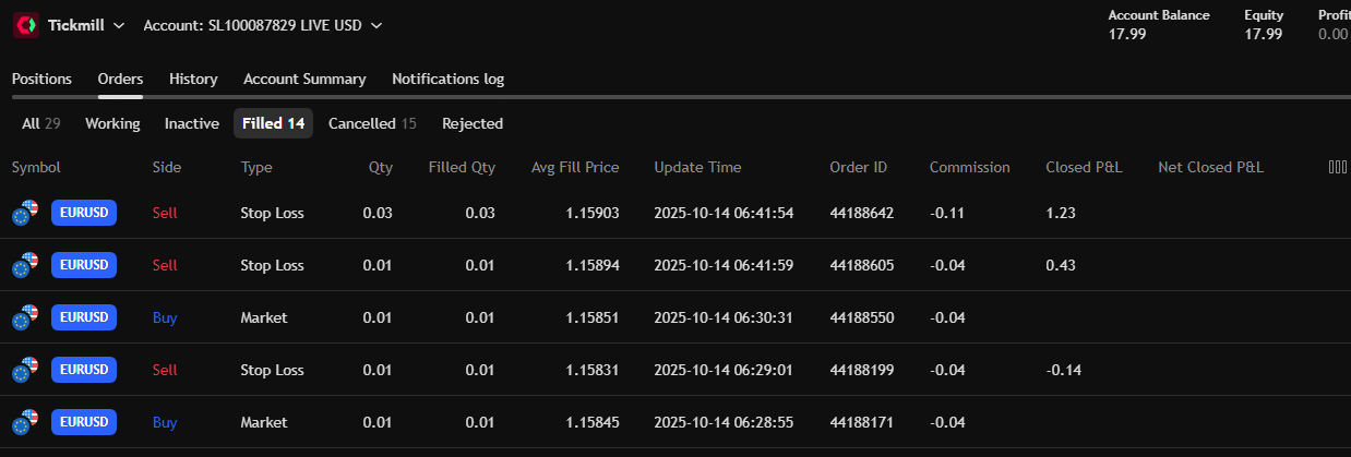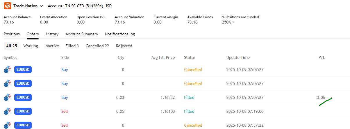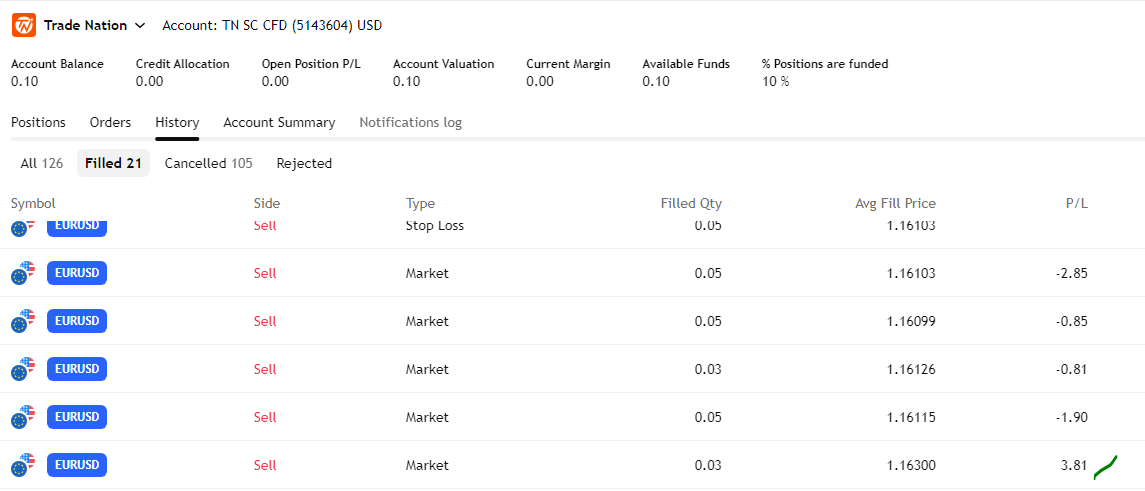 I adjusted my stop loss to secure profit and now the stop loss was hit but I exited with some profit.