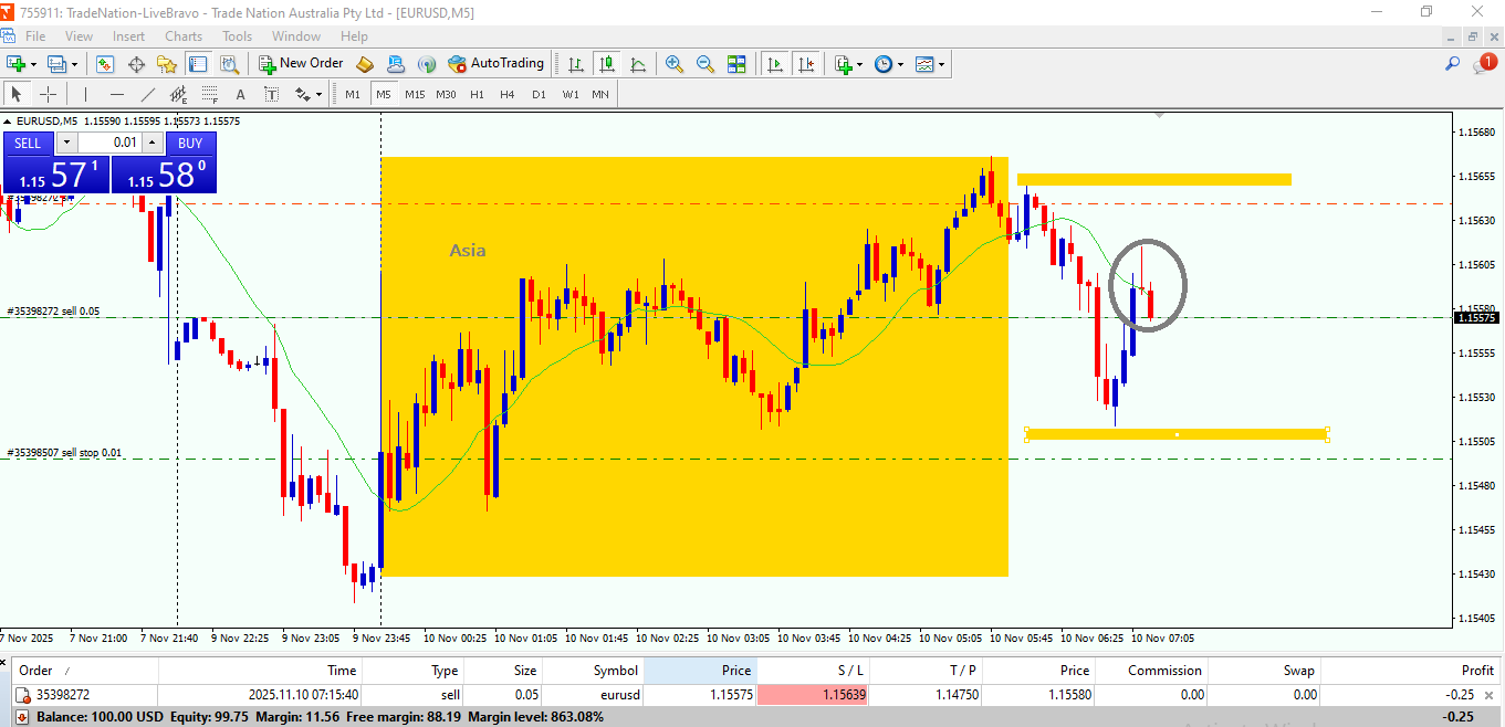 I got stopped out and then price started moving in my intended direction. In hindsight, I should have set a wider stop loss. I am done for the day