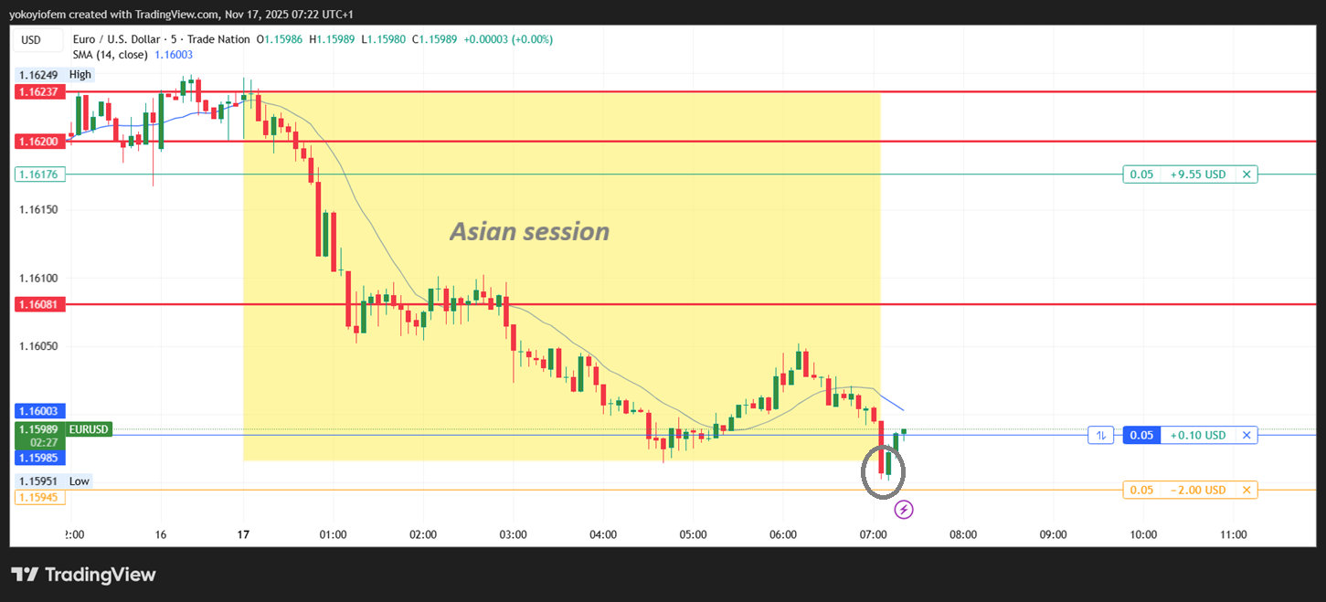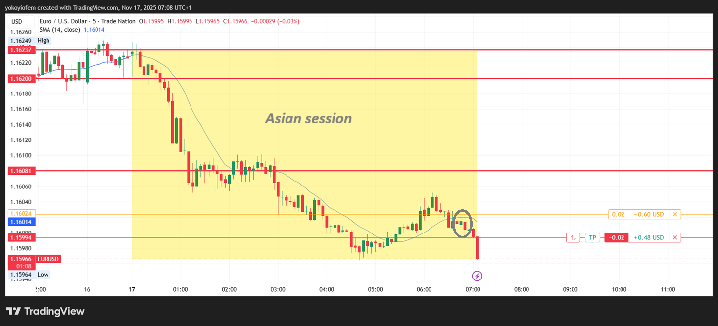 I took profit at the break of the Asian low.
