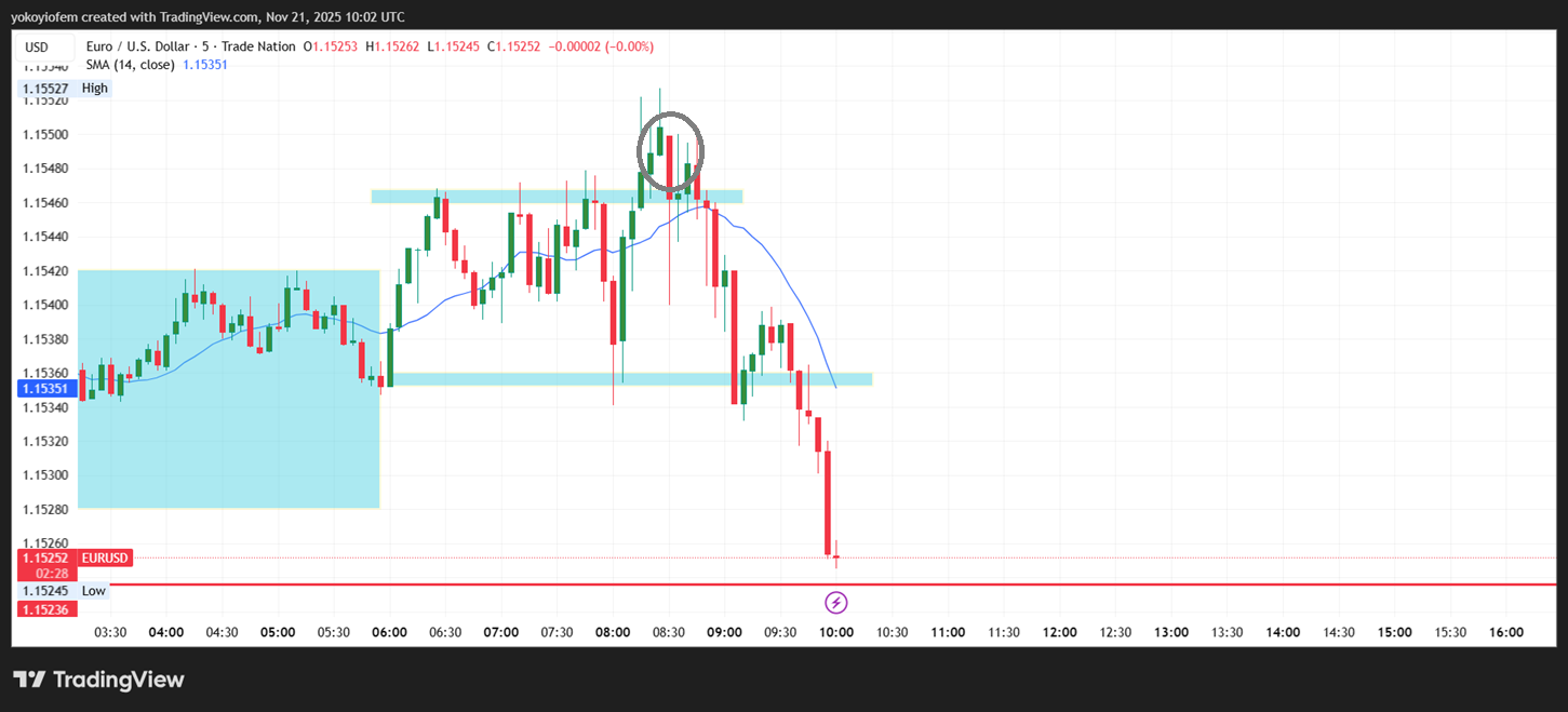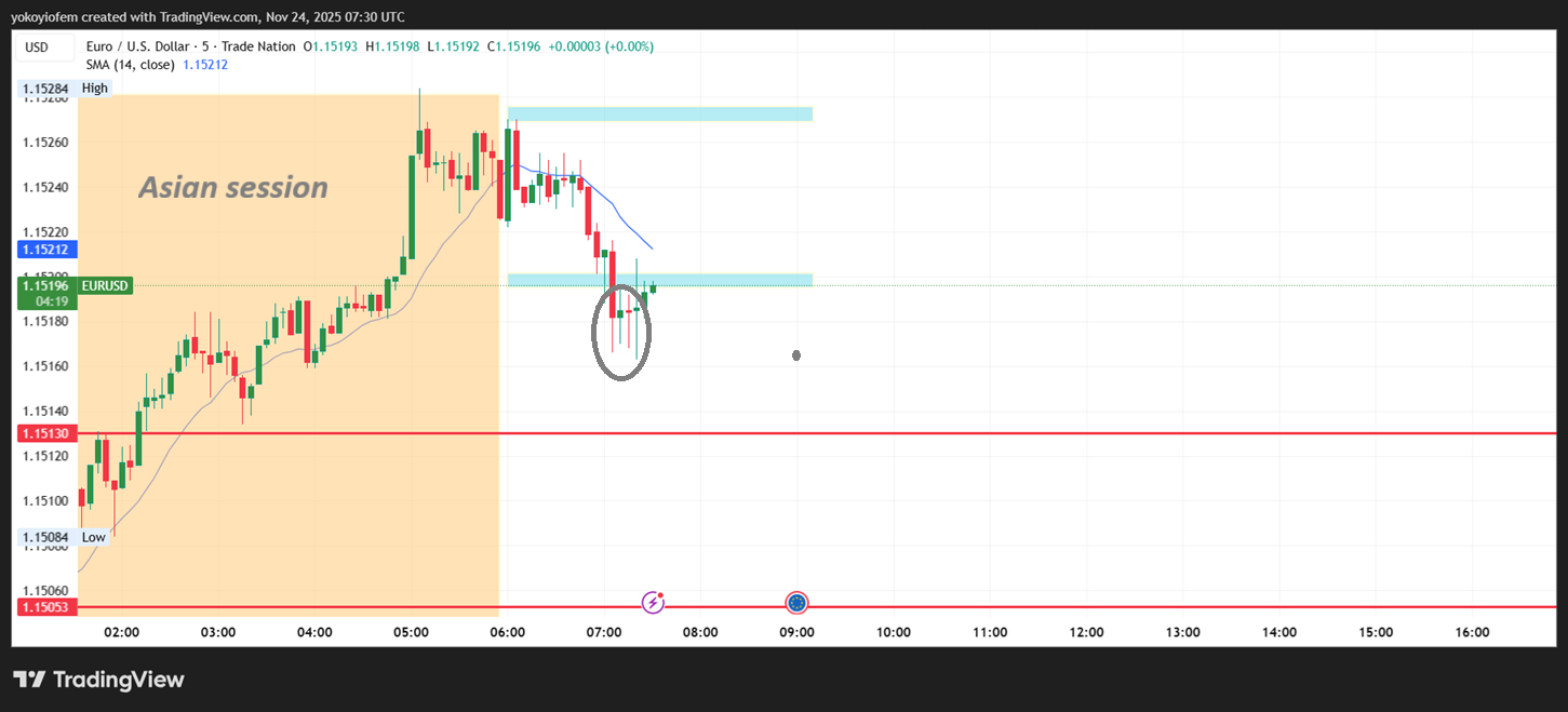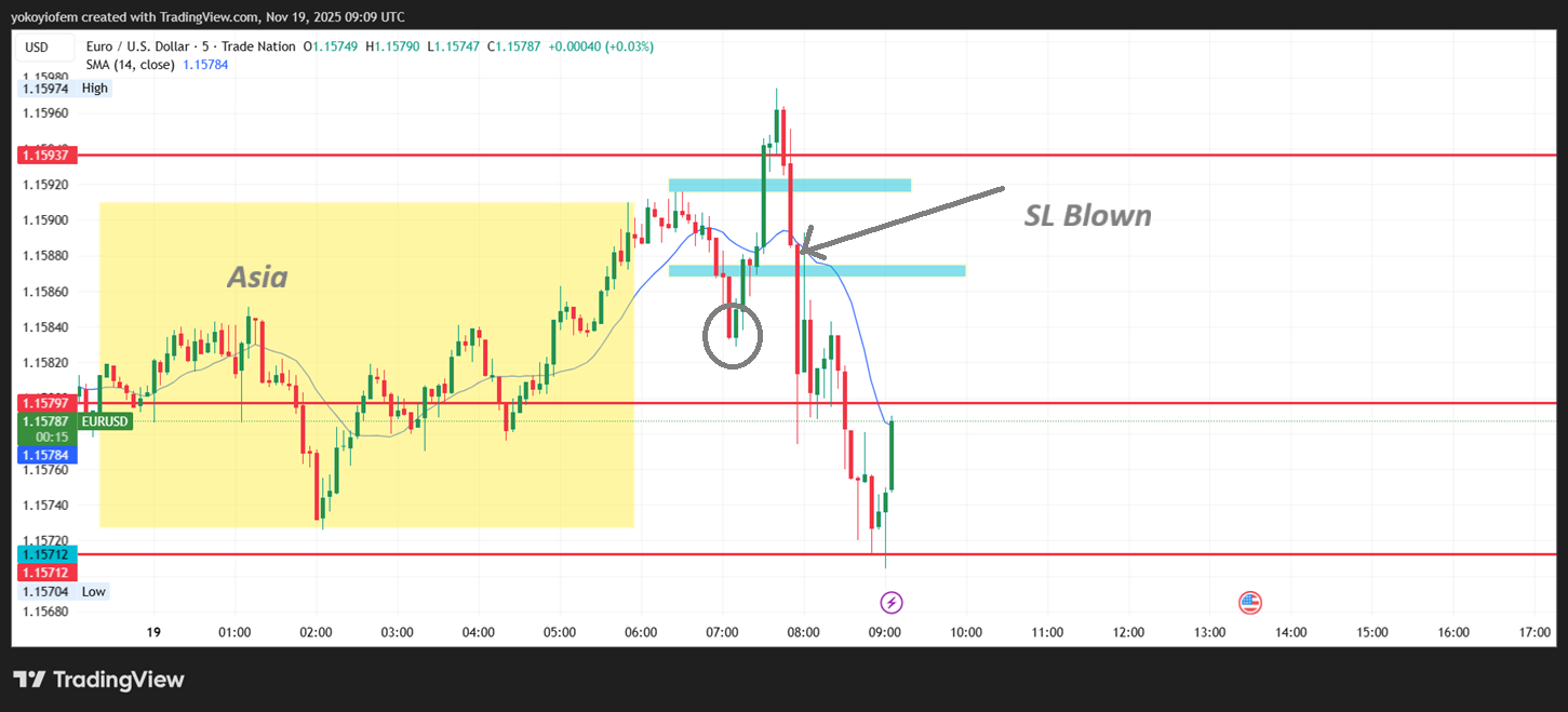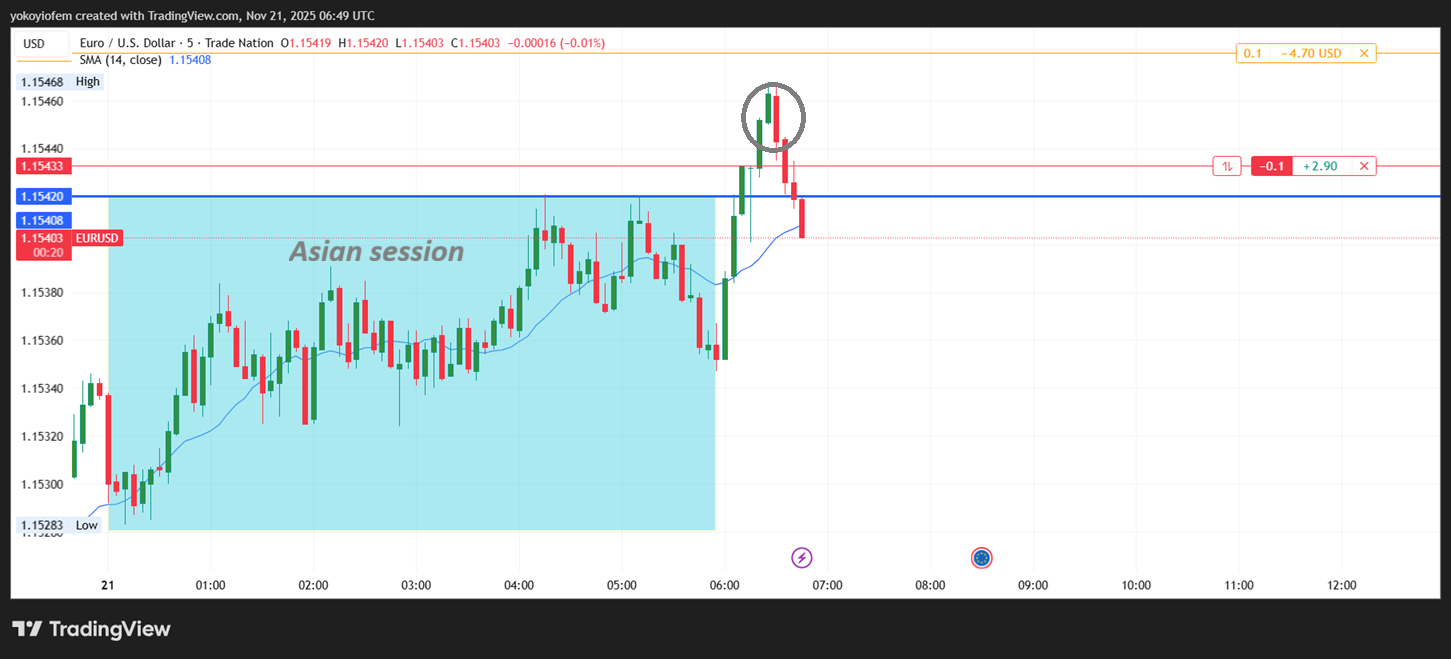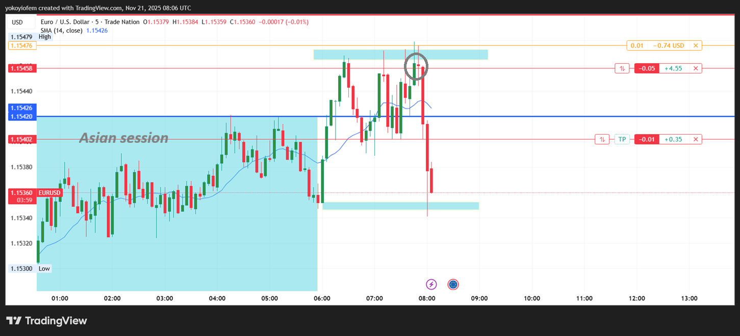 I took a buy during franky, hoping to catch the reversal when price breaks the Asian high and I spot the first opposite candle. However, I was away from my system when the Asian high was broken and first opposite candle formed. by the time I cam back the franky reversal had started and price fell so quickly. I tried to short but got stopped out so i stopped trading for the day.