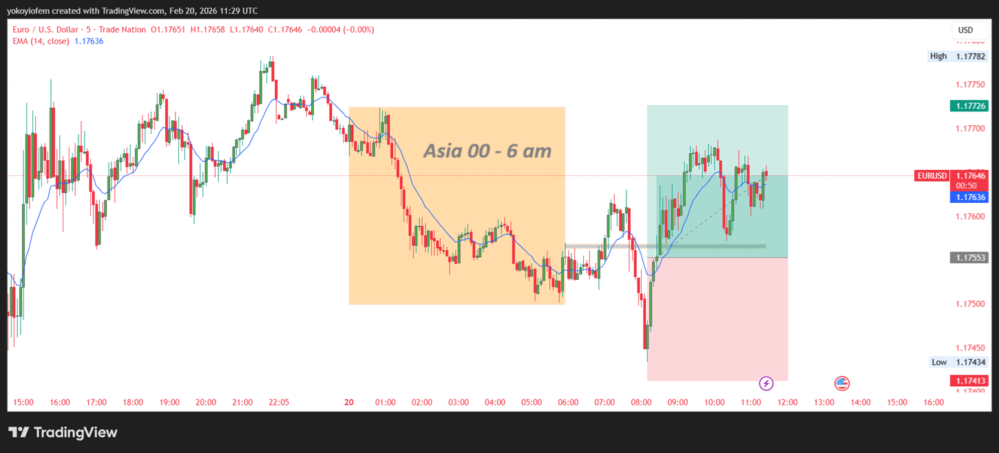 I have taken a buy trade now with SL at 1.1741 and TP at the upper edge of the Asian range (1.1772). There are option expiries sitting upwards so I think they should act as a magnet to price, especially the option expiry sitting at 1.1775