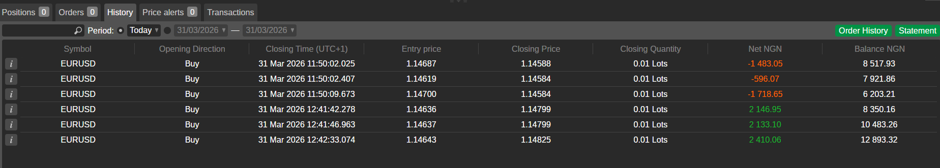 I have exited my trades with profit. I was stopped out of my first trade when price nosedived below the FIX and hit my SL, but I went long again and recorded a 20 pip profit on each trade