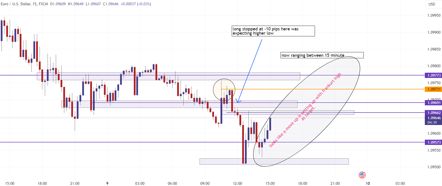 For example, attached is the London session range for today. Not always, but sometimes you will get a retest of the session high or low. If you did not enter during London start of Frankfurt open, you can trade the retest.