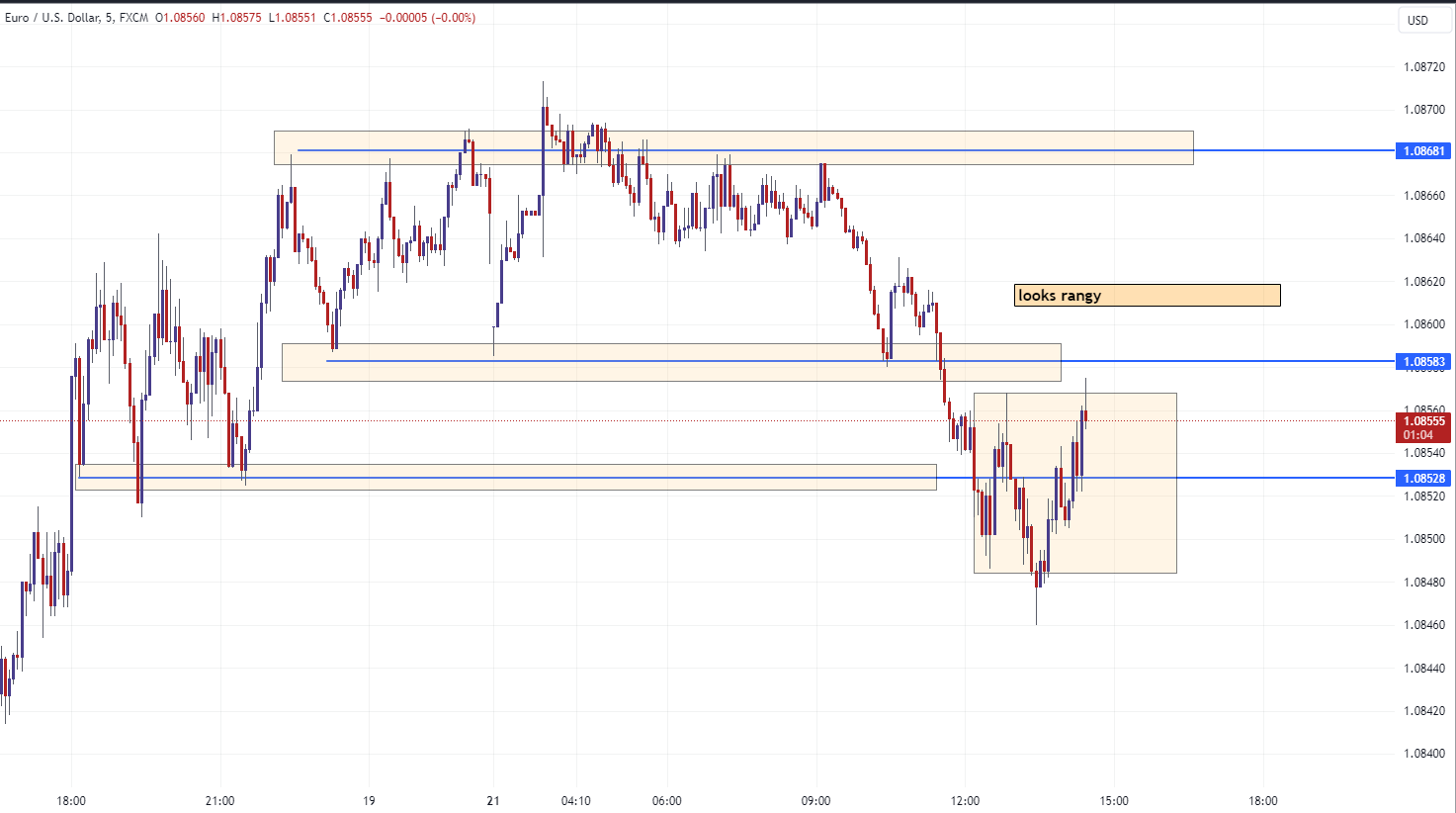 I have had atleast 2 buy and 2 sells that have moved +3 pips only to comeback. That means it is ranging. But the frankfurt being bearish doesn't give me confidence to be a buyer. So i am inclined on the range side.