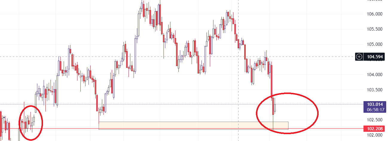 The DXY target level of 102.20x that I mentioned was hit yesterday & we had a solid bounce off of it to 103.20x (around yesterday's high).