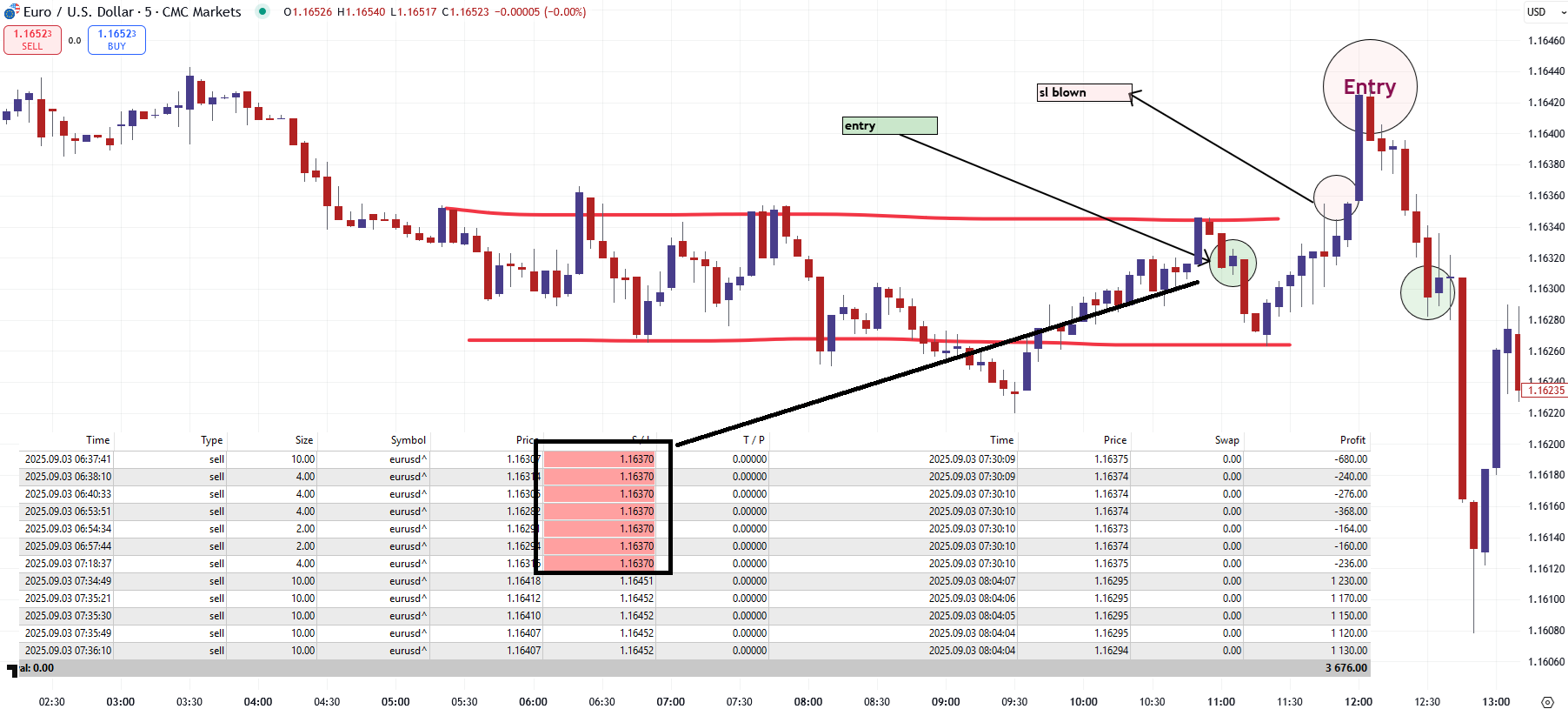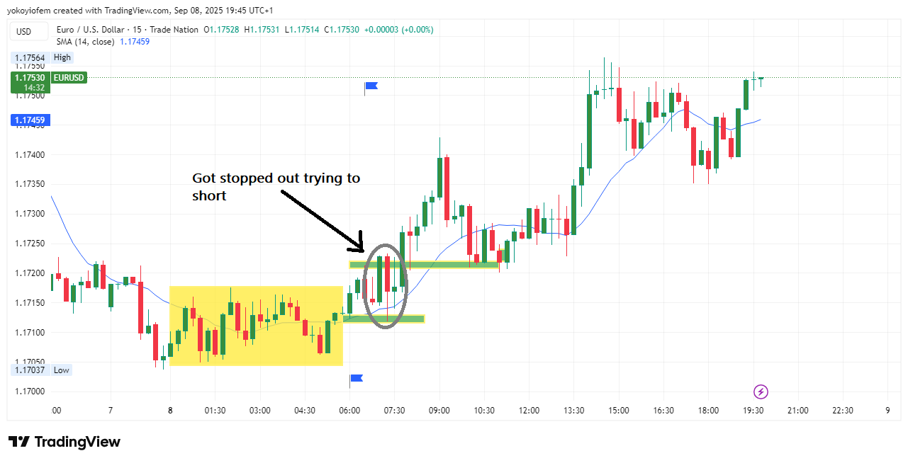 I was stopped out for 10 when i tried to short franky. I changed bias and went long on franky and was able to make some profit but i had lowered my lot size so the profit couldn't cover the loss.