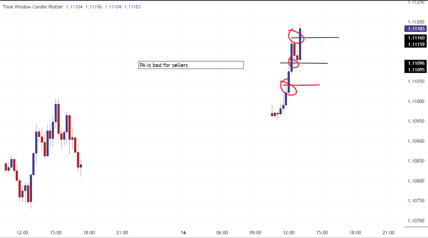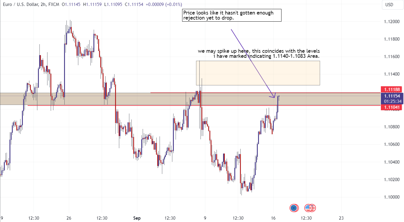 Since our time horizon on intraday trades is an hour or maybe 4 hours being caught in a rejection that could push fast would be really bad. Best to start positioning for shorts EURUSD only after a major support level breaks.