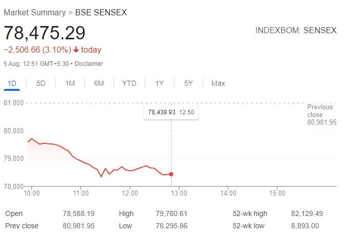 Read more here https://timesofindia.indiatimes.com/business/india-business/stock-market-crash-today-bse-sensex-nifty50-august-05-2024-dalal-street-indian-equities-global-markets/articleshow/112275085.cms