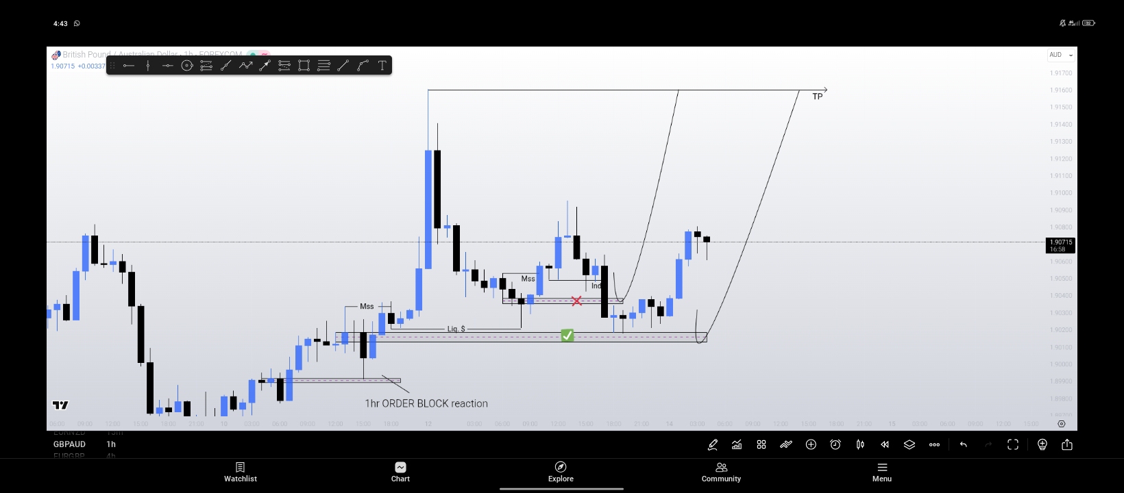 Here is the detailed breakdown of the GBPAUD chart on the 1hr timeframe