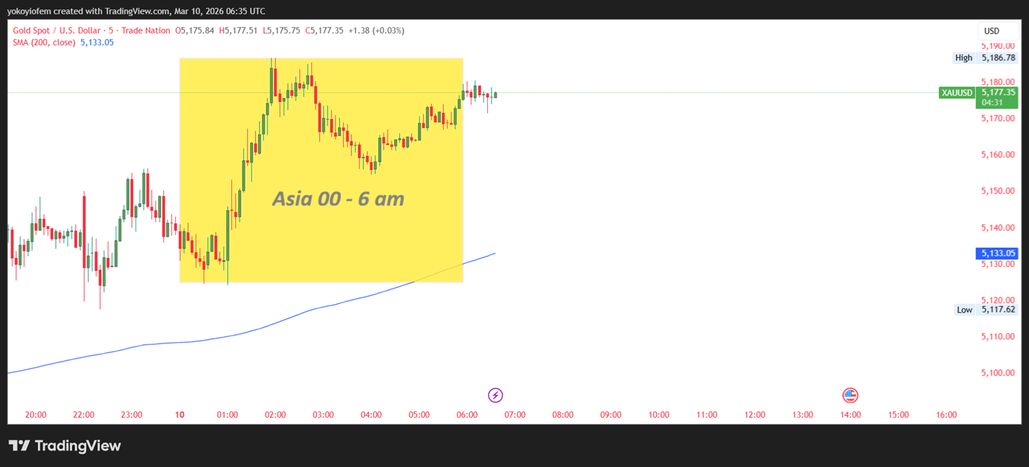 Good morning traders. Right now gold is still trading within the Asian range. I am waiting for gold price to break out of the Asian range from ontop or below then I take a buy/sell as necessary. In other words, I will trade the breakout.