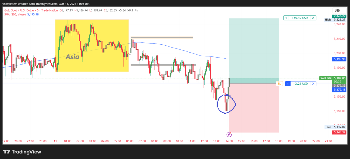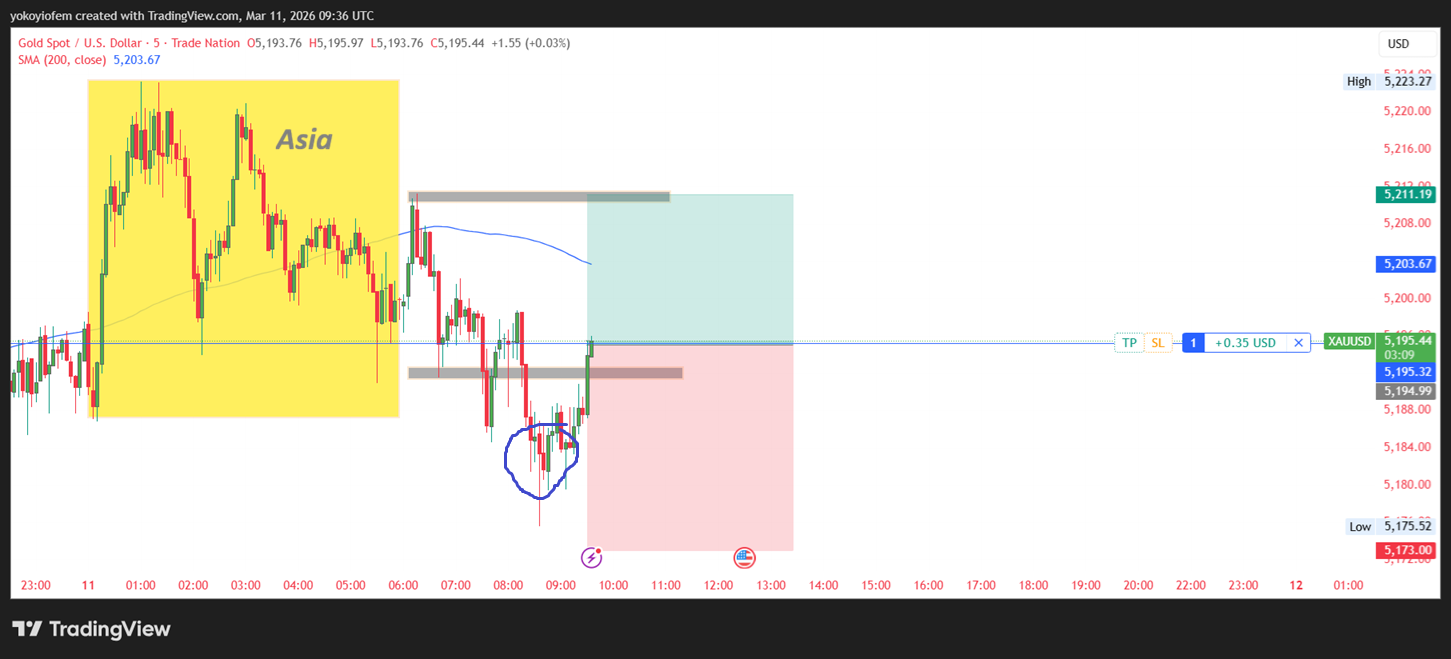Just went long on gold becase price is revrsing back into the Asian session. my buy trigger is encircled in blue. This is my last gold trade for the day.