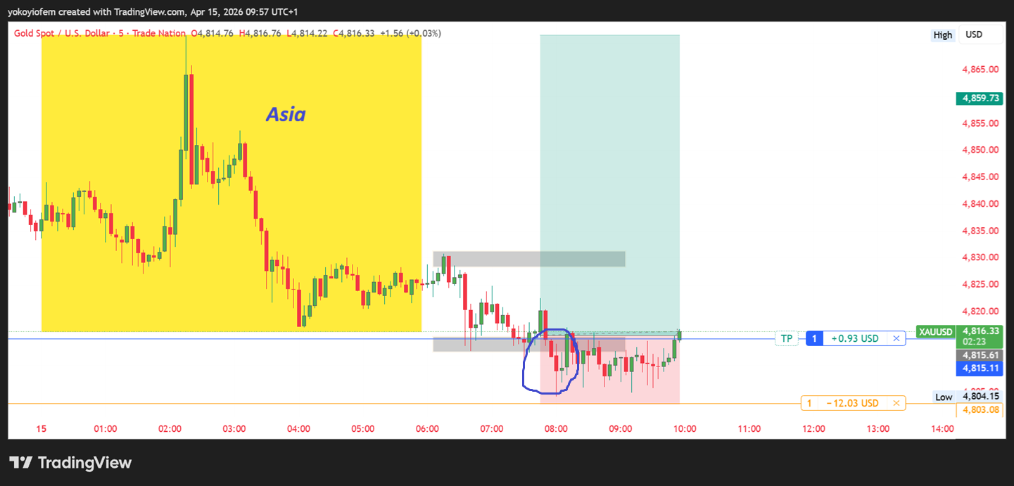 I have taken a long trade on gold after price broke below the Asian session range and started reversing back into it.