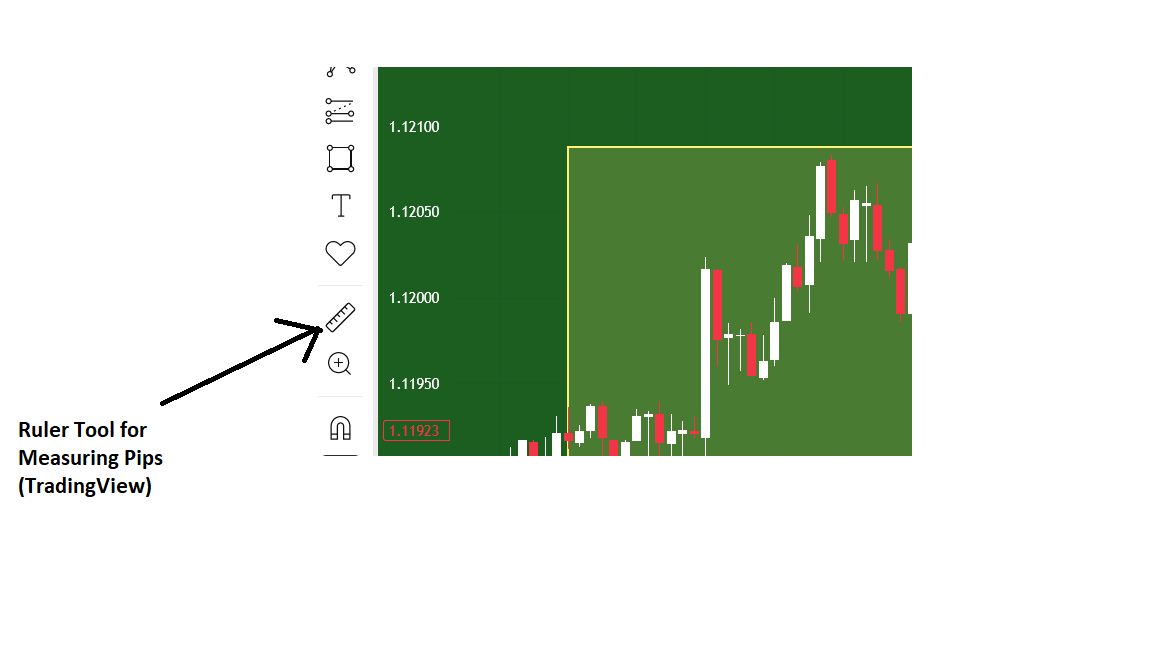 By using the "arrowed line tool" to draw a line to connect the two points distance you want to calculate the pips for. After drawing the line some numbers will be displayed and the middle number represents the pips. So if the middle number is 101 then your pips is 10.1 pips